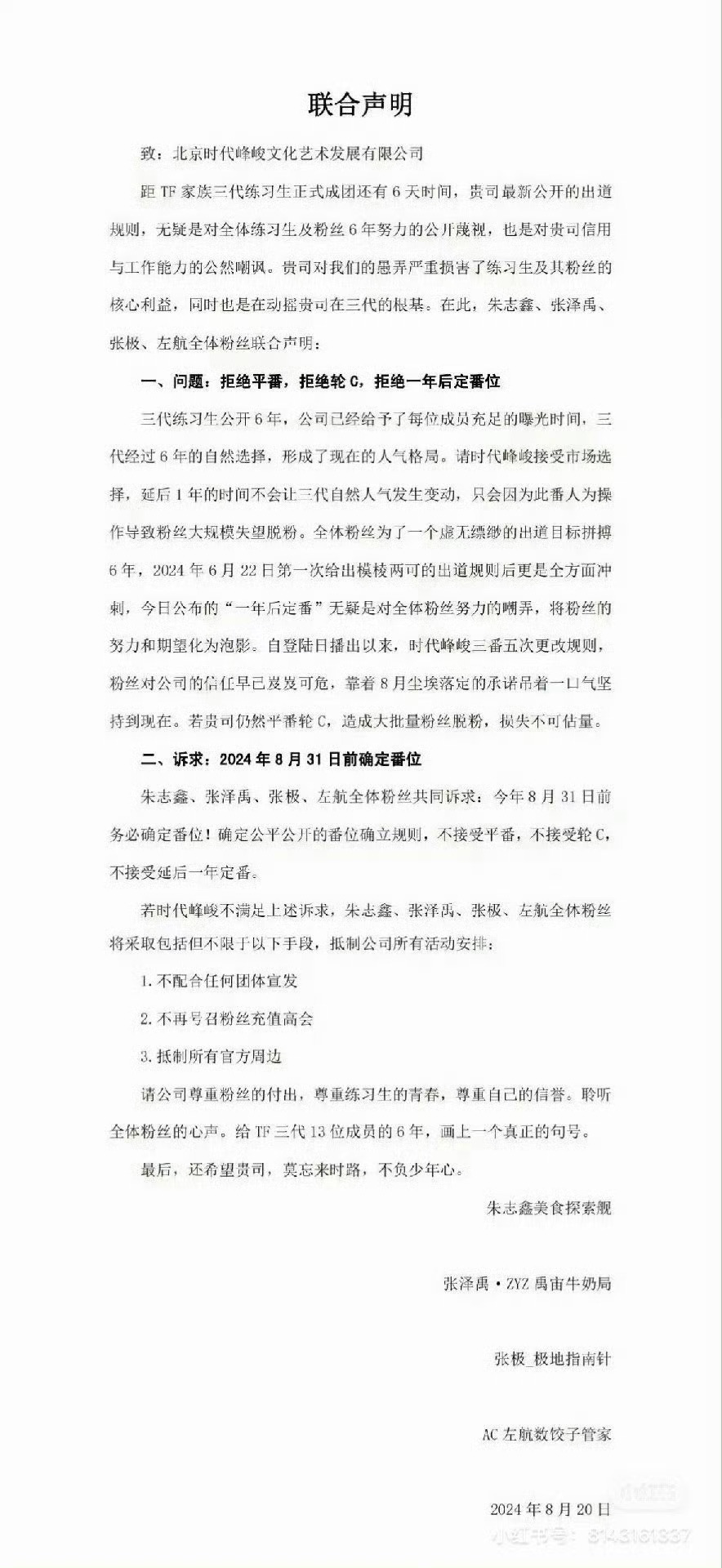时代峰峻高会声明我们这次的文件呢🔥是盖了“公章”的🥳所以我们也不可能再改了😡再改的话也就失信于粉丝了😤