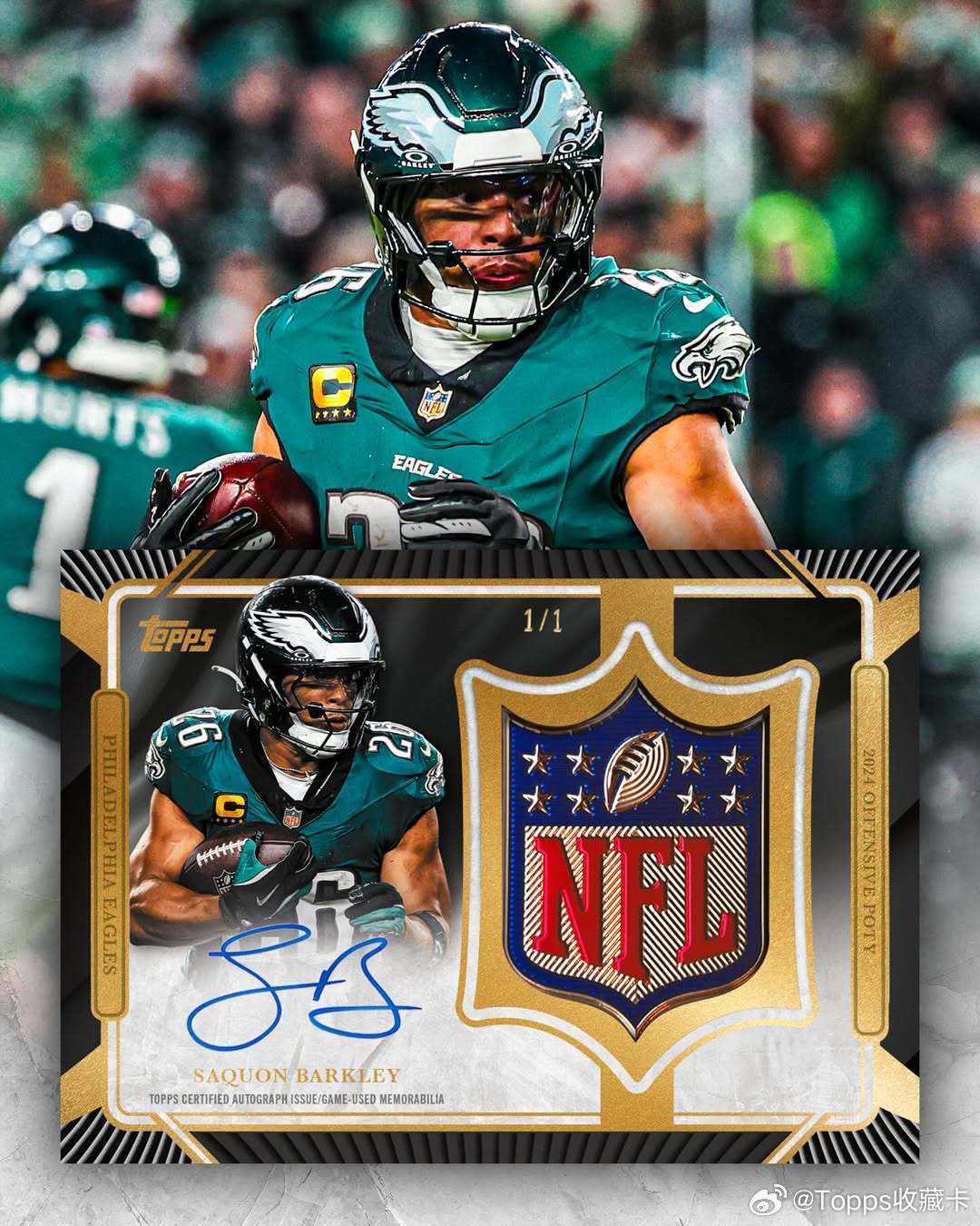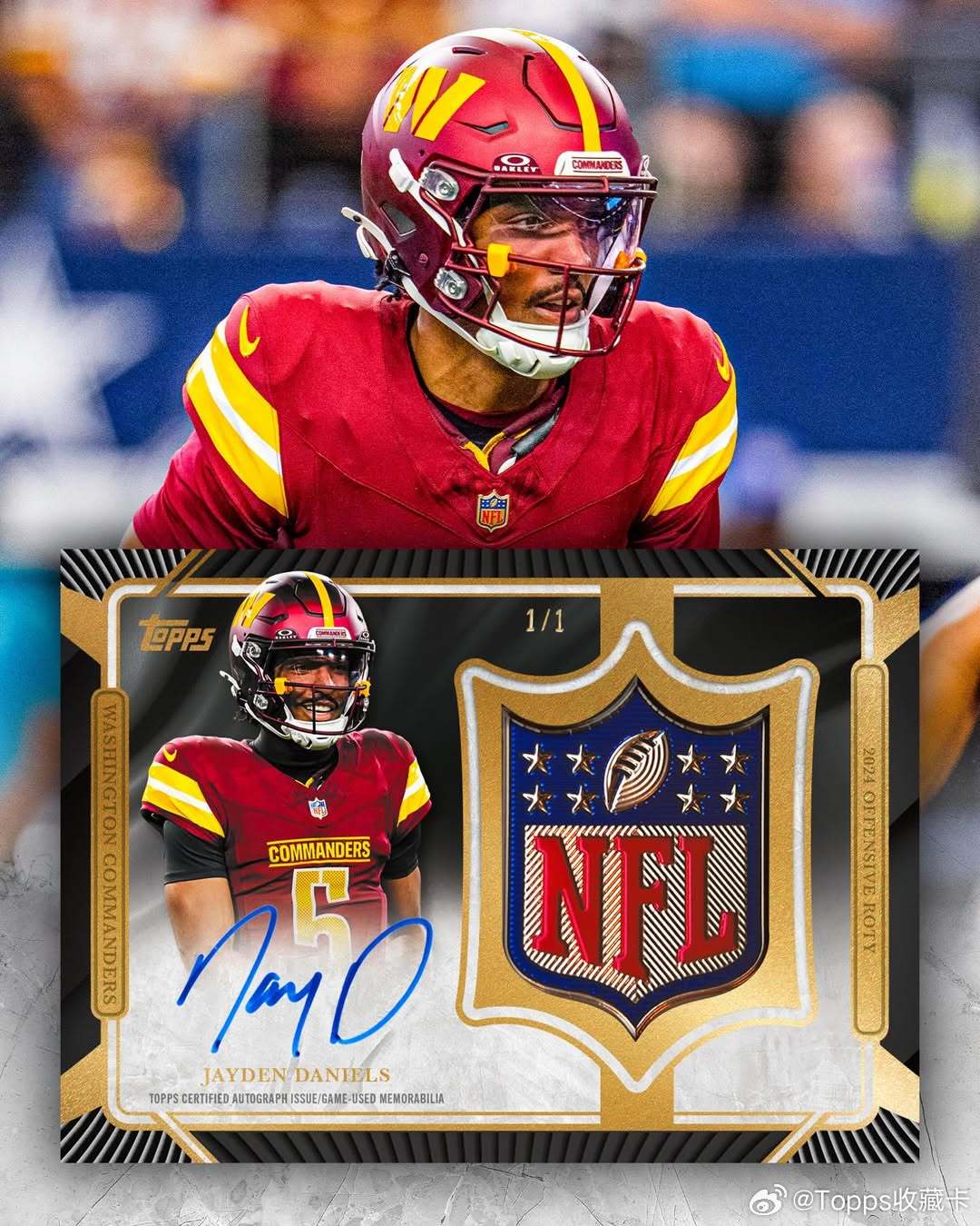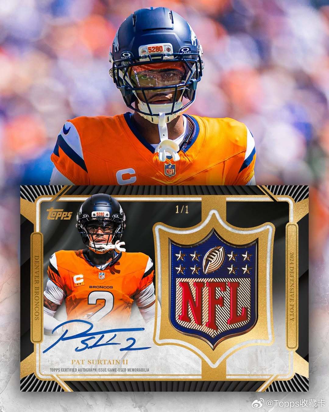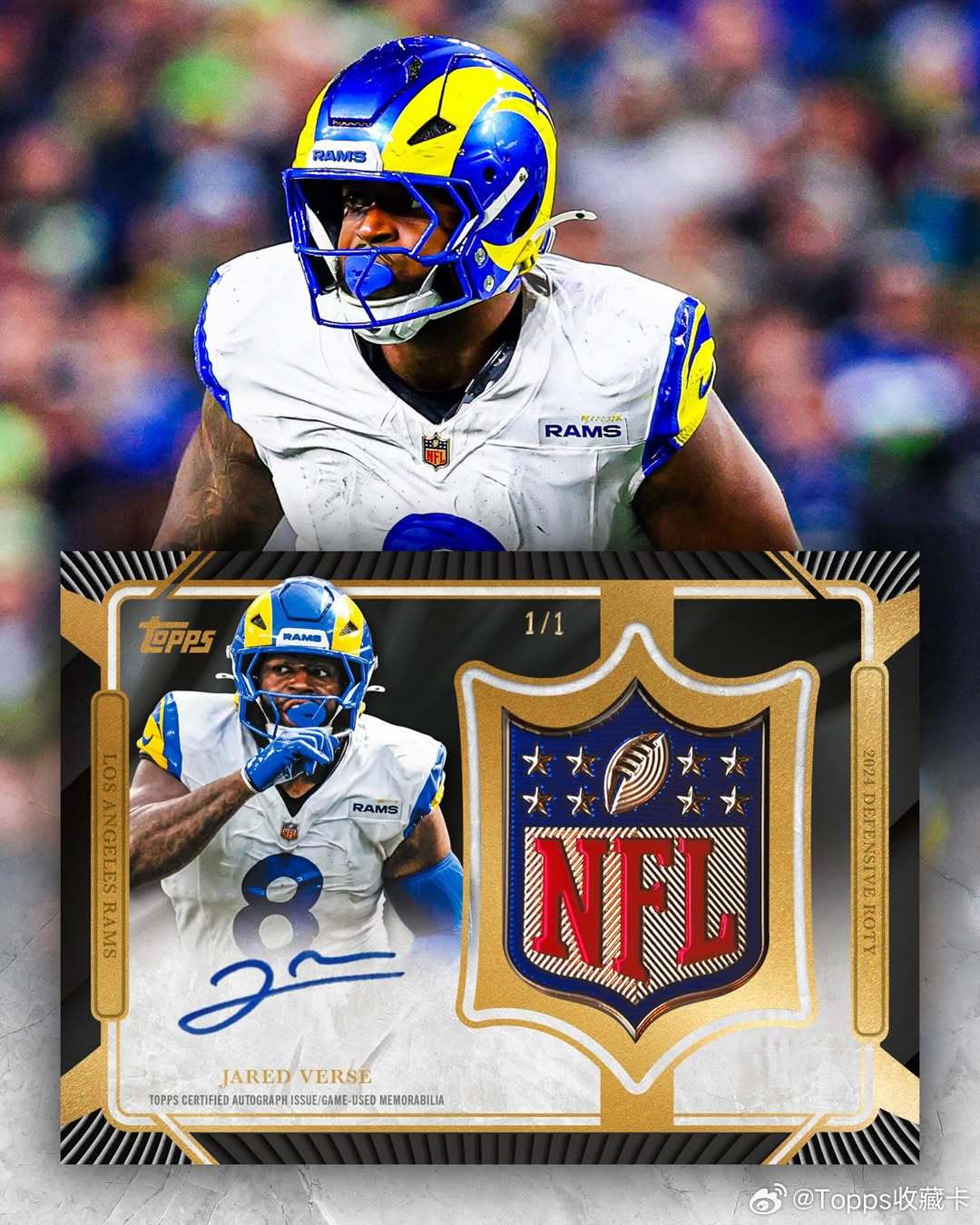 而Topps,用最顶级的 “金色盾牌”实物卡,为2024赛季的五位获奖者加冕:🏈 约什·艾伦(MVP)🏈 萨克万·巴克利(最佳进攻球员)🏈 帕特·瑟坦二世(最佳防守球员)🏈 杰登·丹尼尔斯(最佳进攻新秀)🏈 贾里德·维斯(最佳防守新秀)