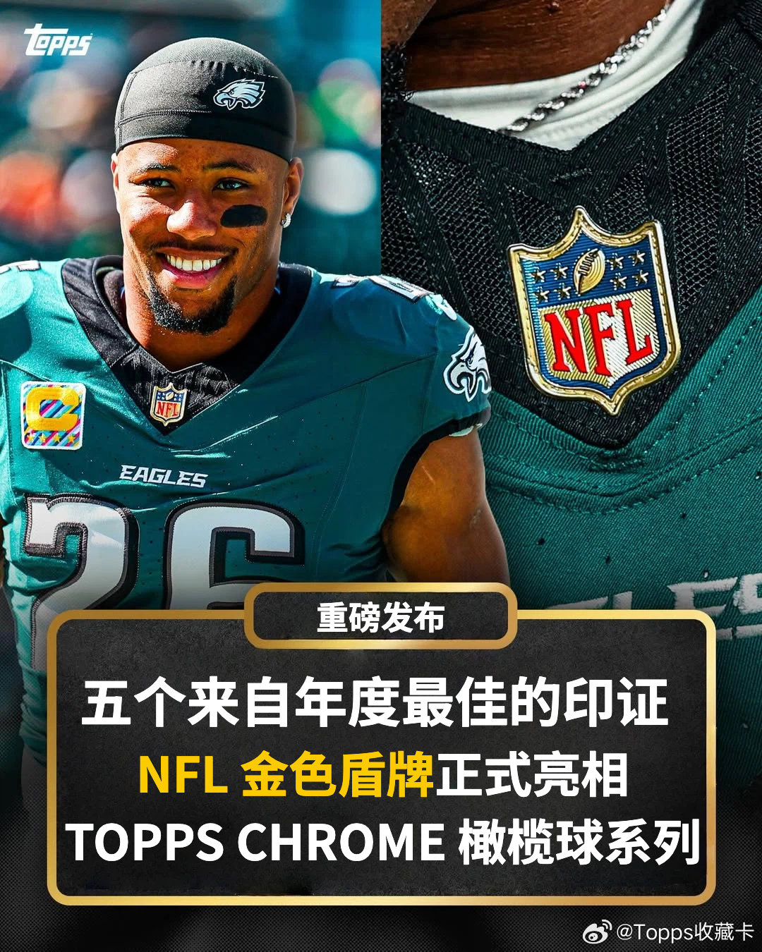 如今,这枚荣耀徽章从球员亲穿球衣上取下,封入 Topps Chrome NFL橄榄球系列。既是对巅峰赛季的荣耀加冕,更是将赛场王者的至高荣光,凝练成一枚可握在手中、镌刻传奇的永恒勋章。