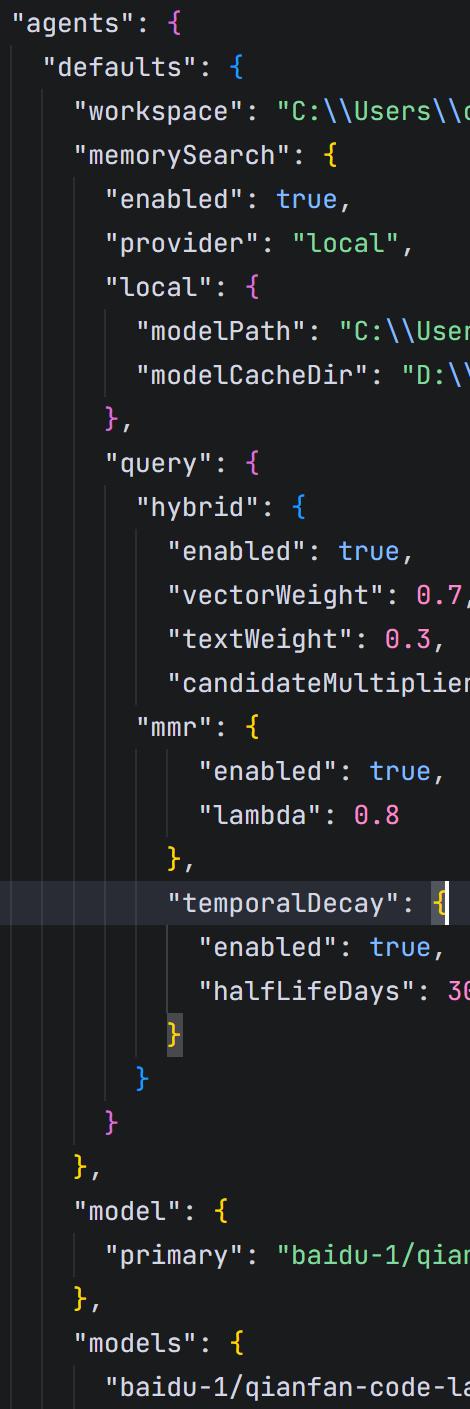 Openclaw,知识图谱,向量搜索,文本搜索,记忆衰减等等,这是openclaw的使用密码,是关键,折腾了几天,又回到起点,先后试了两个插件。有一个插件叫“graph-memory”,我看了网上的视频,它的安装挺复杂的,要配置嵌入模型,还要配置大语言llm模型,还要有配套的数据库管理系统neo4j,想到光是模型配置就需要在主模型的基础上另加两个内嵌的模型,如果在网上再订两个api,那还是有点不划算,所以我就在本地装了一个ollama,跑两个内嵌于graph-memory中间的模型,专门用于记忆模块管理。另外安装了neo4j图谱数据库,这样,再在百度购买一个api ,openclaw就搞定了。但是后来发现,这样用起来,电脑有点卡,越往后用越不满意,最后想换一个插件试试,但是结果没有成功,因为找的这个叫精英永久记忆插件,它的配置方法根本没说清楚,还得网上去找他的视频看,太麻烦了,后来搞了一阵就放弃了。怎么办?我又翻到openclaw官网,看了官网的关于原生的openclaw是如何管理记忆的,我终于发现,哪还用得着装什么插件?就把官方的这个功能用好就差不多了。直接开干,我翻到官网上的文档,从概念开始学习,再到配置大框架,再到具体的配置reference,一步一步,搞了一天,终于成功了!不过这个其实还可以继续优化。目前语义和文本搜索都是可以用的,还可以以混合模式搜索,还可以设置记忆生命周期,还可以设置模糊搜索的程度比例,搜索结果的多样性与准确性也是可以权衡选择,真的是非常强大。最重要的是,这个也不需要多花tokens,只要一个主要的api就可以了,关键是电脑不卡顿了,不但电脑节省,电也节省了,人也节省精力了,真是一举多得![呲牙][呲牙][呲牙]