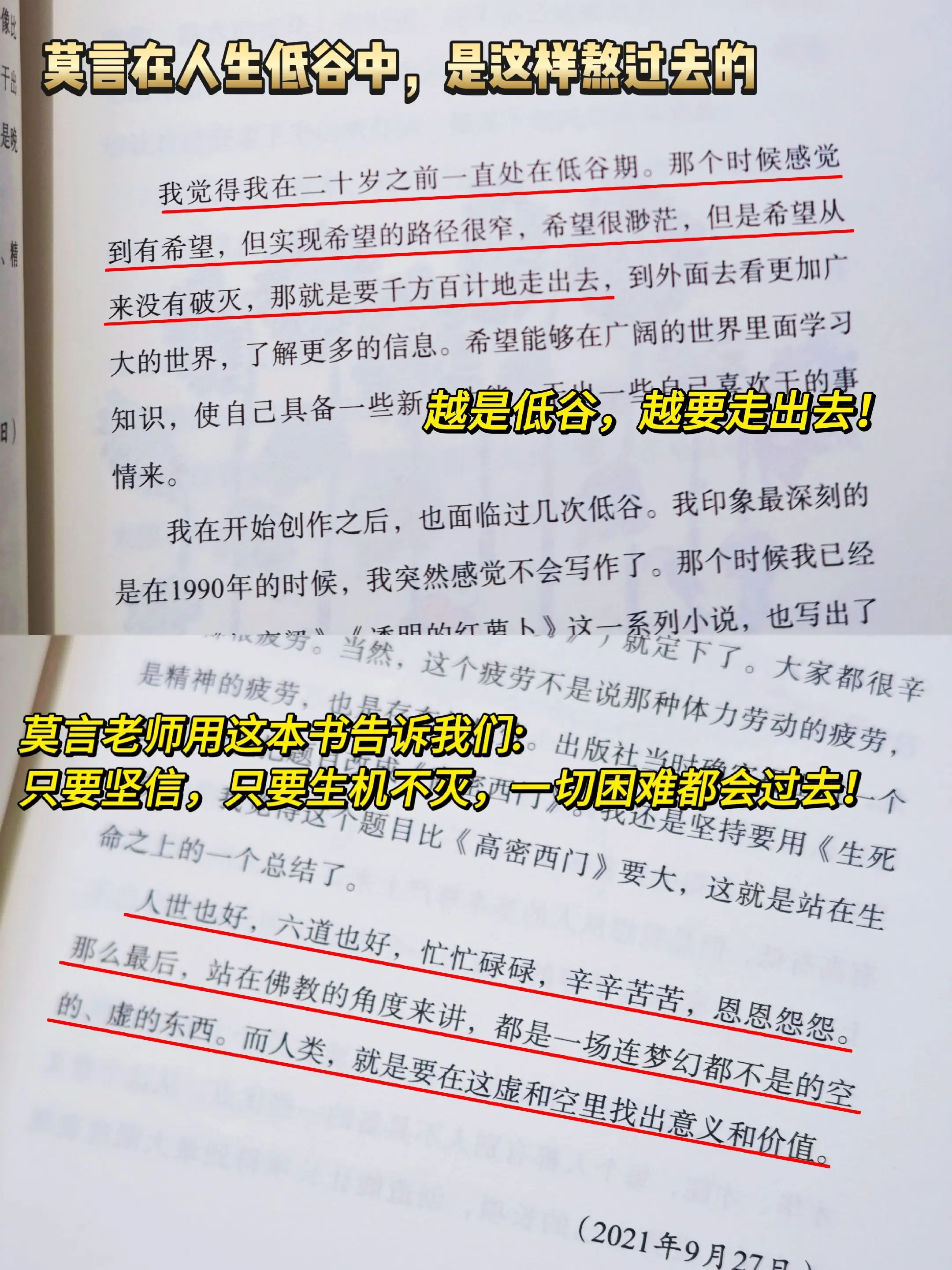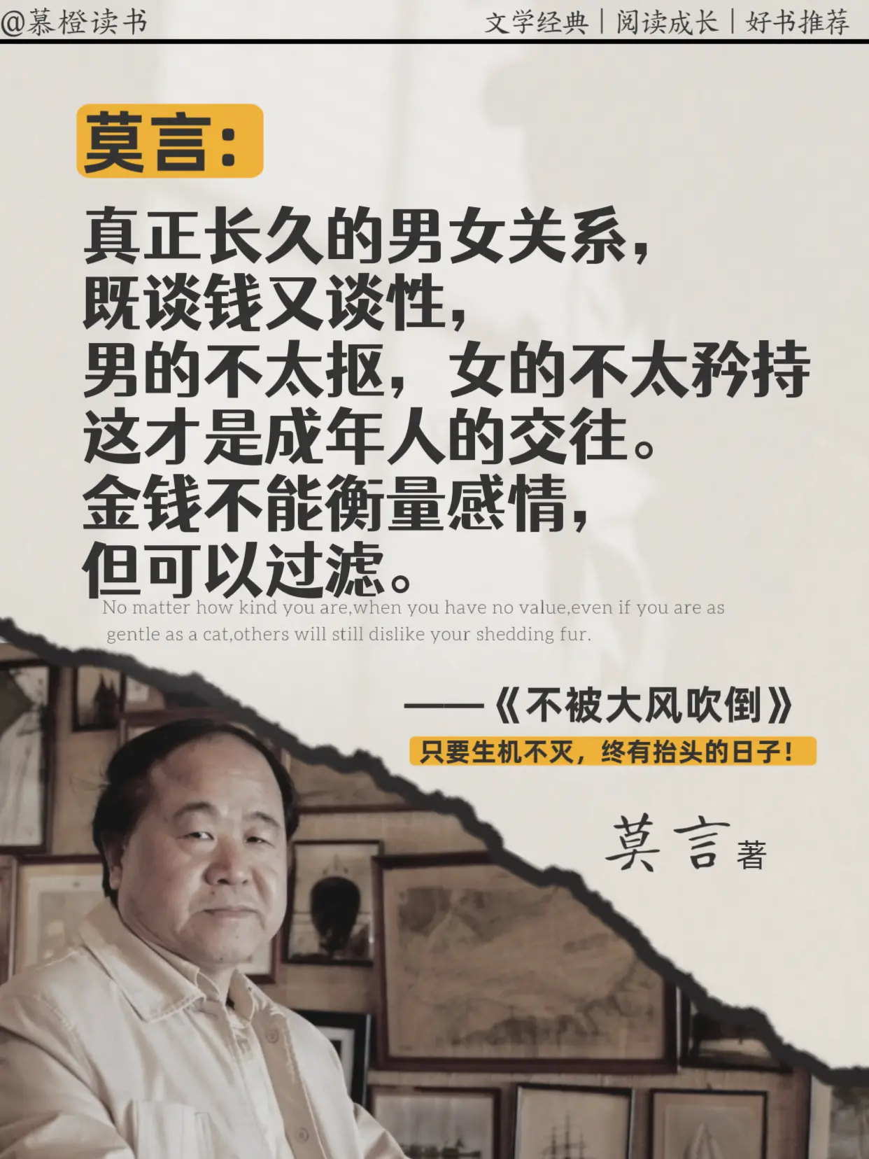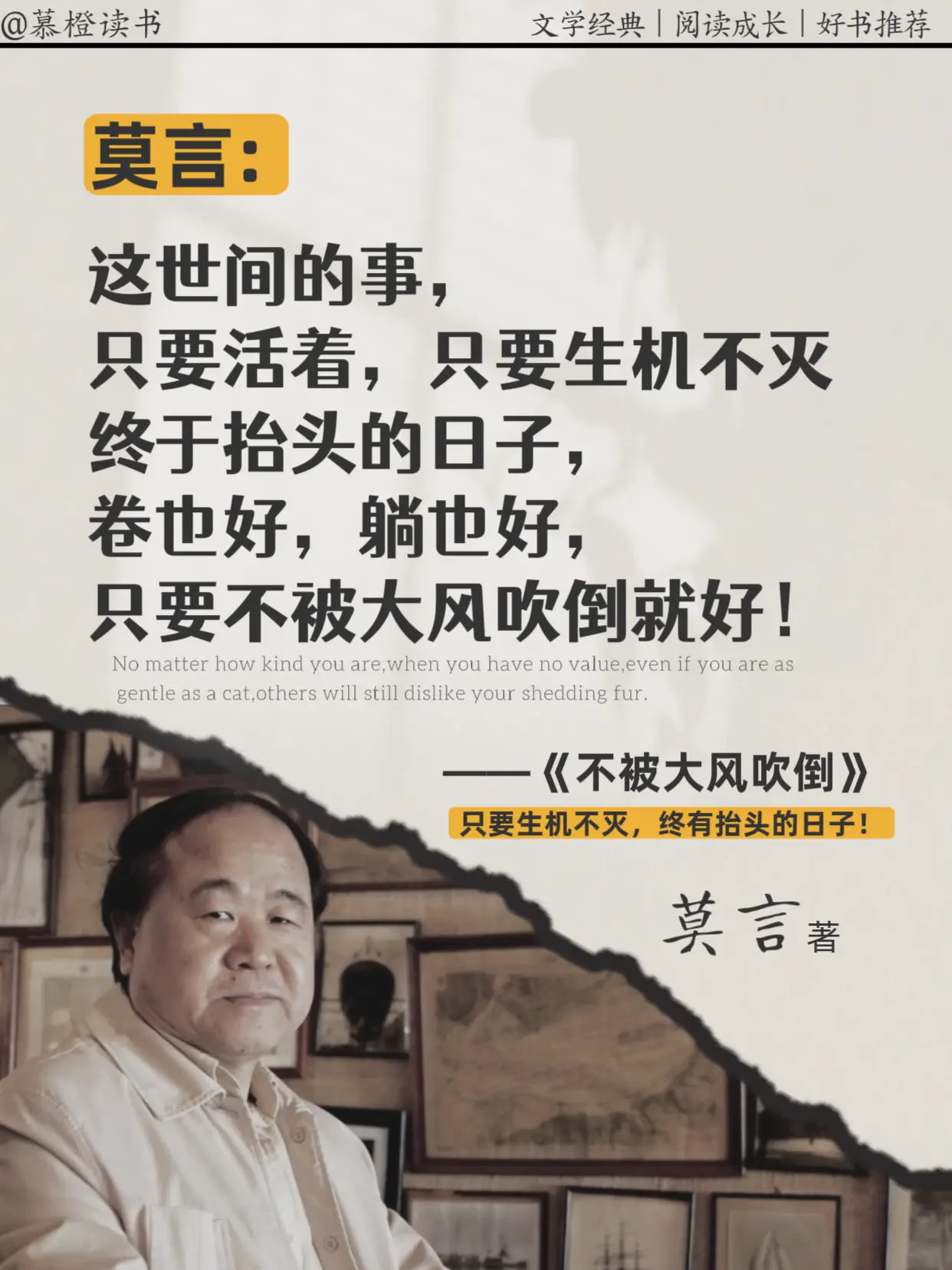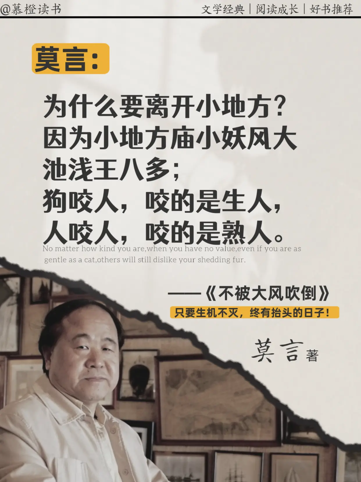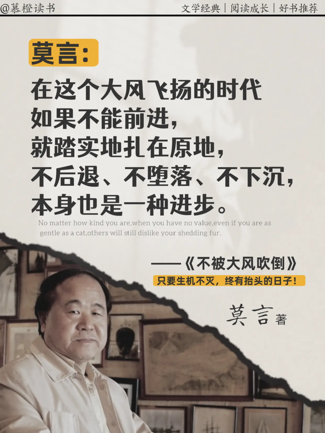 被莫言老师狠狠戳中:不后退,就是进步,读完被莫言新书狠狠共情到😭,只要生机不灭,终有抬头的日子!在这个大风飞扬的时代,如果不能大步向前,