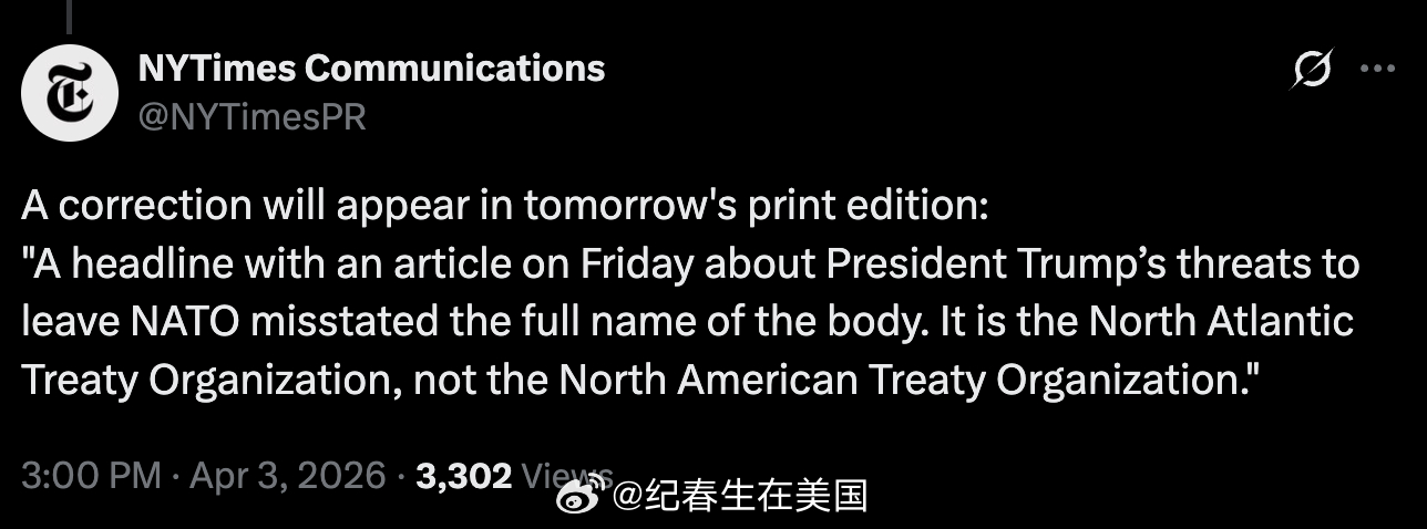 <纽约时报>今天印刷版大标题又闹笑话,将NATO写成了“North Americ