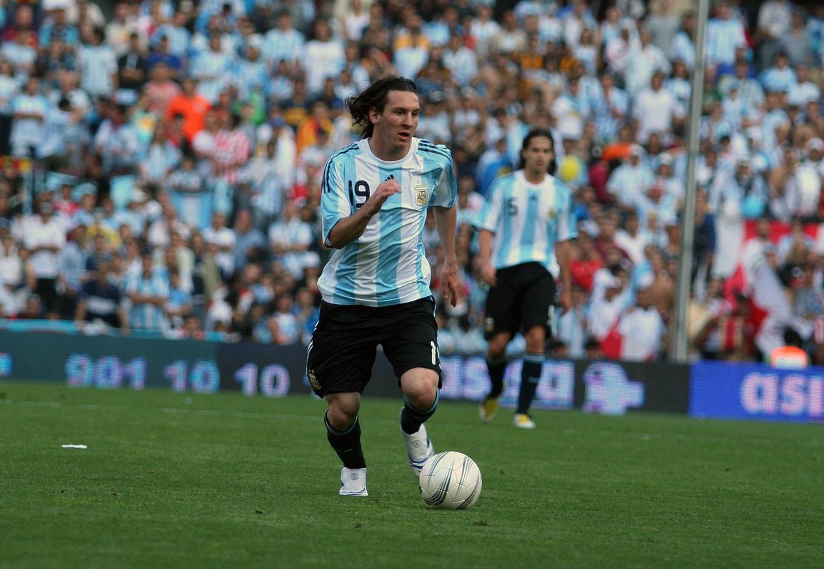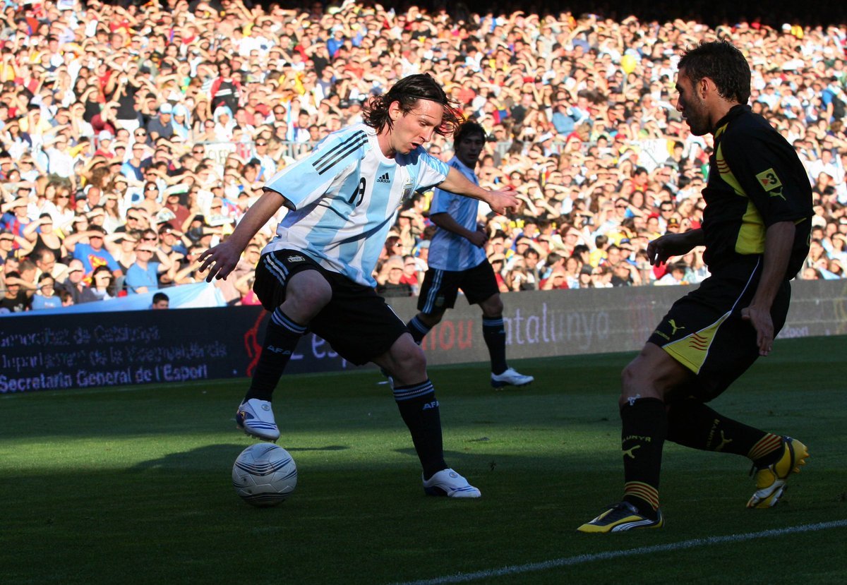 2008年,阿根廷队对阵加泰罗尼亚联队。梅西