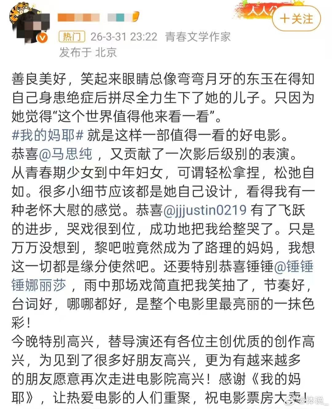 马思纯新片口碑全程笑着进场哭着离场,马思纯演技细腻,把平凡母爱演得真实动人