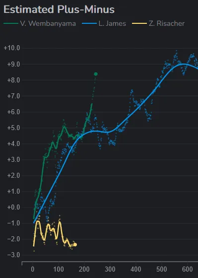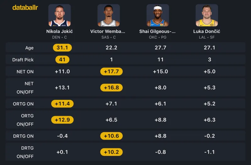 更有趣的一个: 文班是21世纪仅有的几位常规赛净效率值+on/off同时霸榜全联盟第一并且同时场均15+的球员, 另外几位是05年邓肯,09年詹姆斯,16年库里