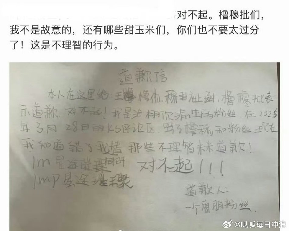 栩你渝生粉丝和橹穆粉丝的道歉信都有,理性上网。