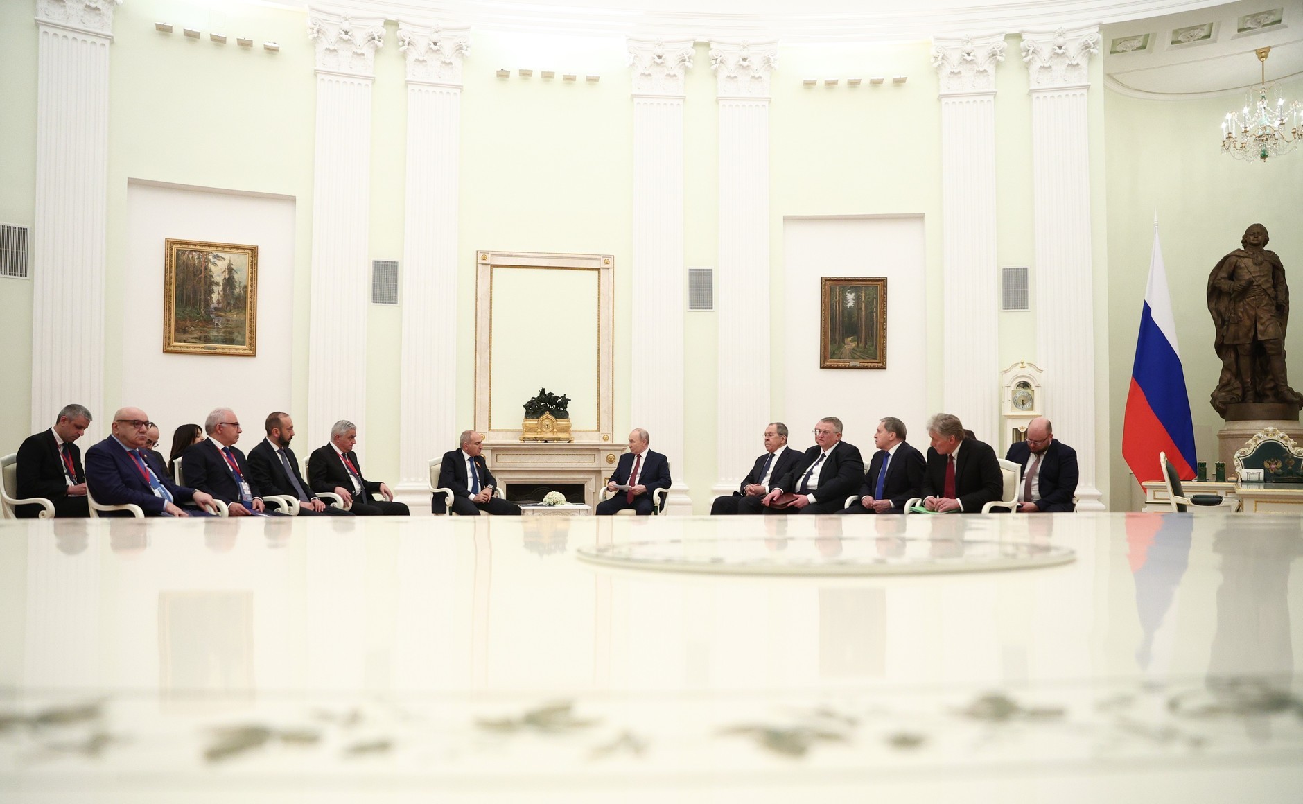 弗拉基米尔·普京与对莫斯科进行工作访问的亚美尼亚共和国总理尼科尔·帕希尼扬在克里姆林宫举行了会谈。
