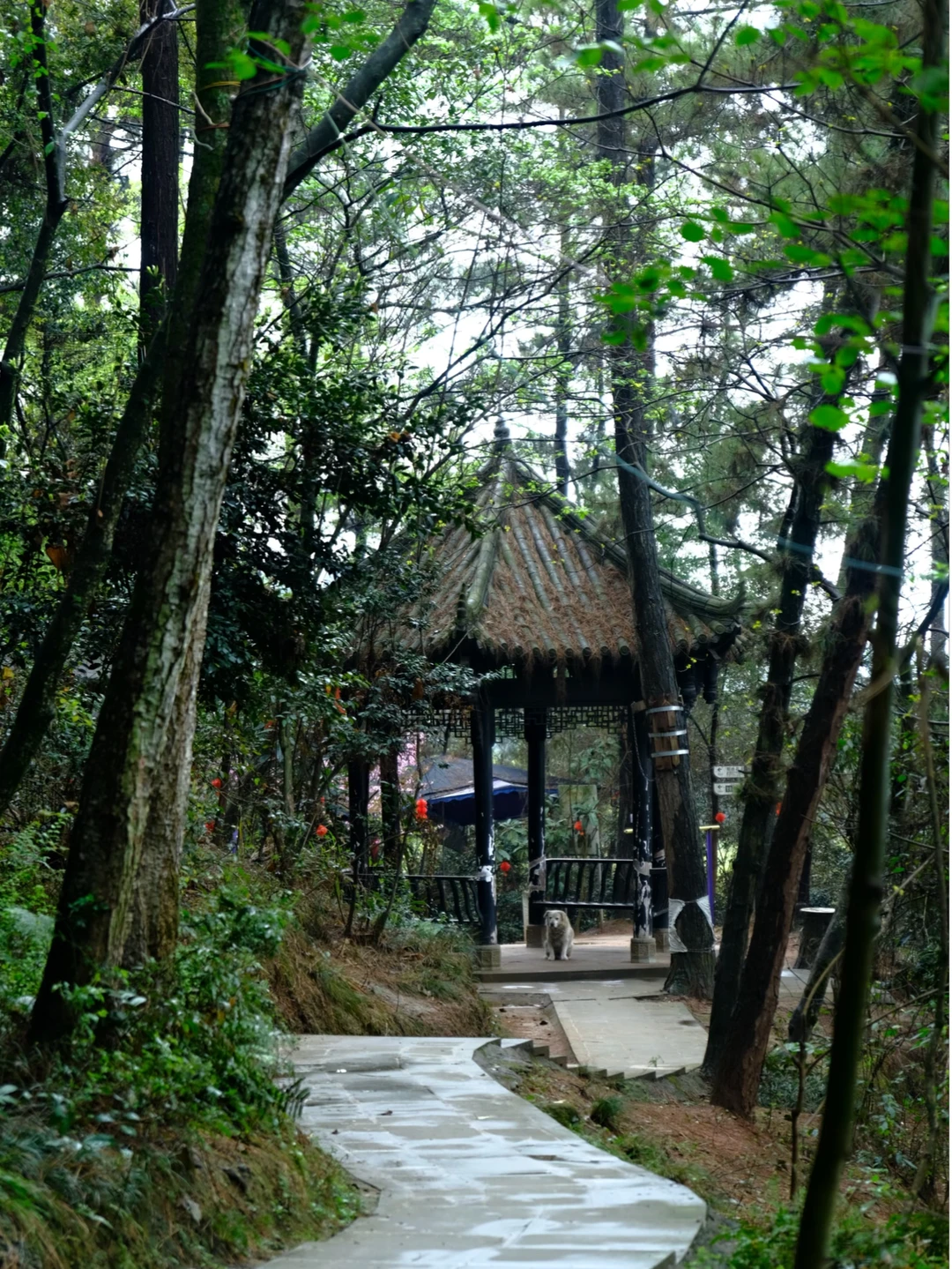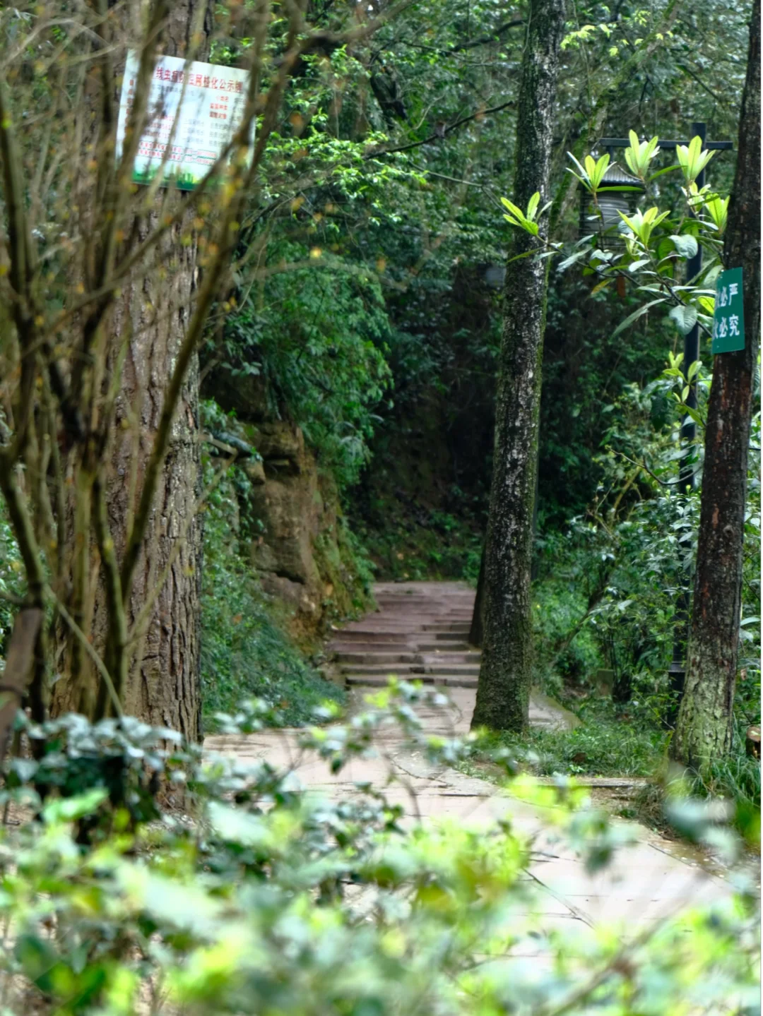 🌿沿途有郁郁葱葱的🌳参天古树、历史悠久的🏯观所、苍翠挺拔的🎋竹林、🪷摩崖石刻;