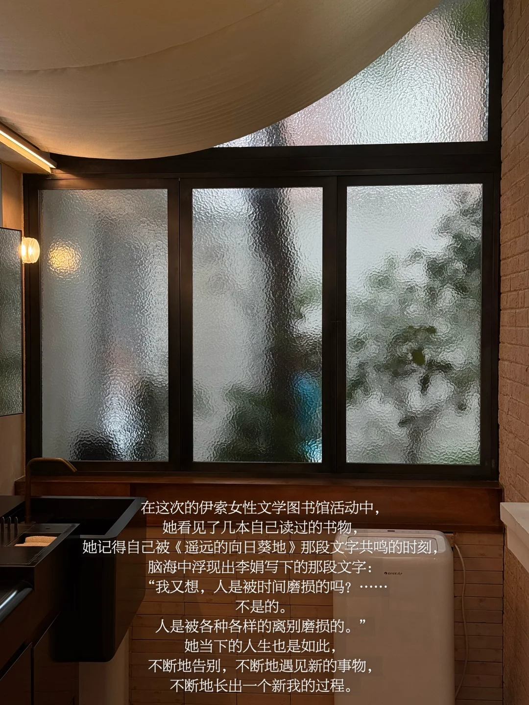 她始终觉得,当女性一直保持思考,凭借自己获得独自生活的物质,她终究会清楚看见自己。当她在伊索女性文学图书馆,看见那些女性经由身体和现实经历写下的文字,她总觉得自己在她们的文字中感受到源源不断的力量,总有一些文字能跨越山海、跨越国界,让我们真实地看见彼此,在文字中持续感受彼此存在的温度。