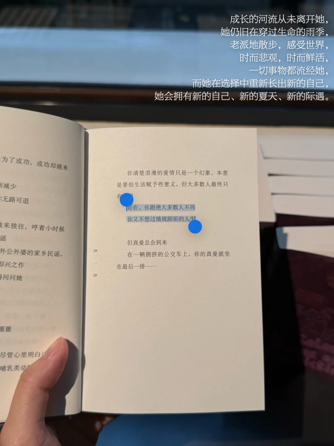 成长的河流从未离开她,她仍旧在穿过生命的雨季,老派地感受世界,时而悲观,时而鲜活,一切事物都流经她,而她在选择中重新长出新的自己,她会拥有新的自己、新的夏天、新的际遇。