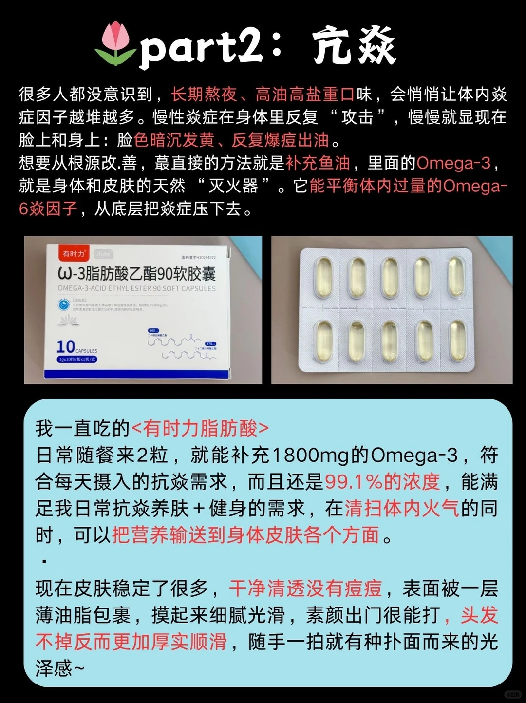 想要从根源改.善,蕞直接的方法就是补充鱼油,里面的Omega-3,就是身体和皮肤的天然 “灭火器”。它能平衡体内过量的Omega-6焱因子,从底层把焱症压下去。
