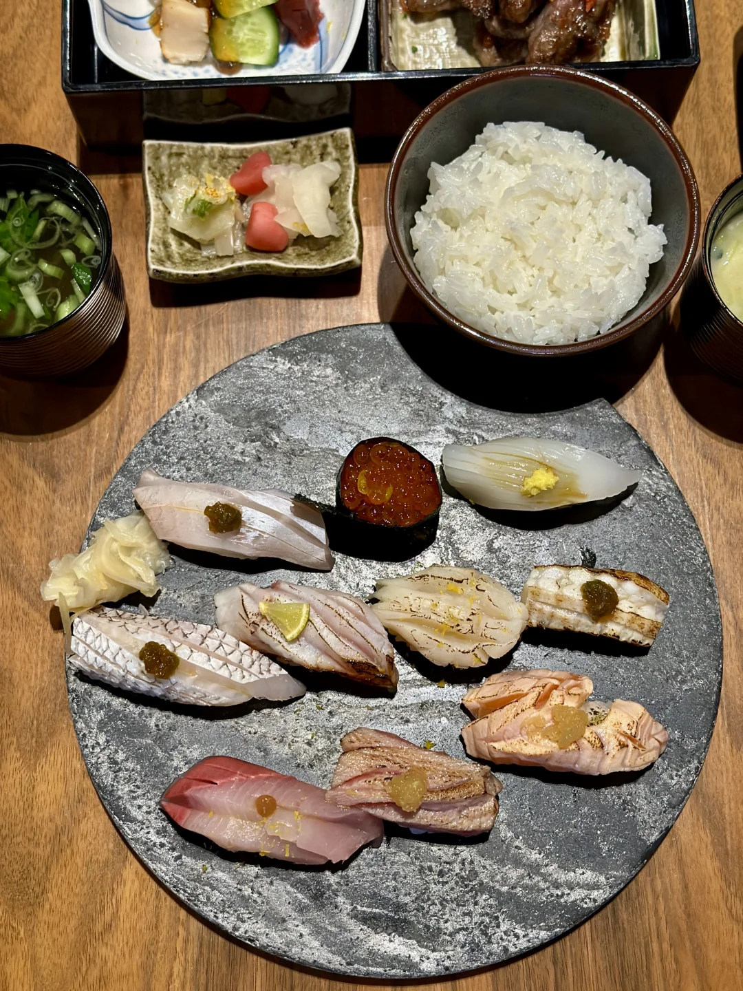 因为一起吃的小伙伴不太能吃生的,寿司师傅贴心的捏了好几个炙烤的版本。每一贯我都好爱,again,又是大片肉感很足,用料不手软,刺身处理的很干净,保留鲜完全不腥。