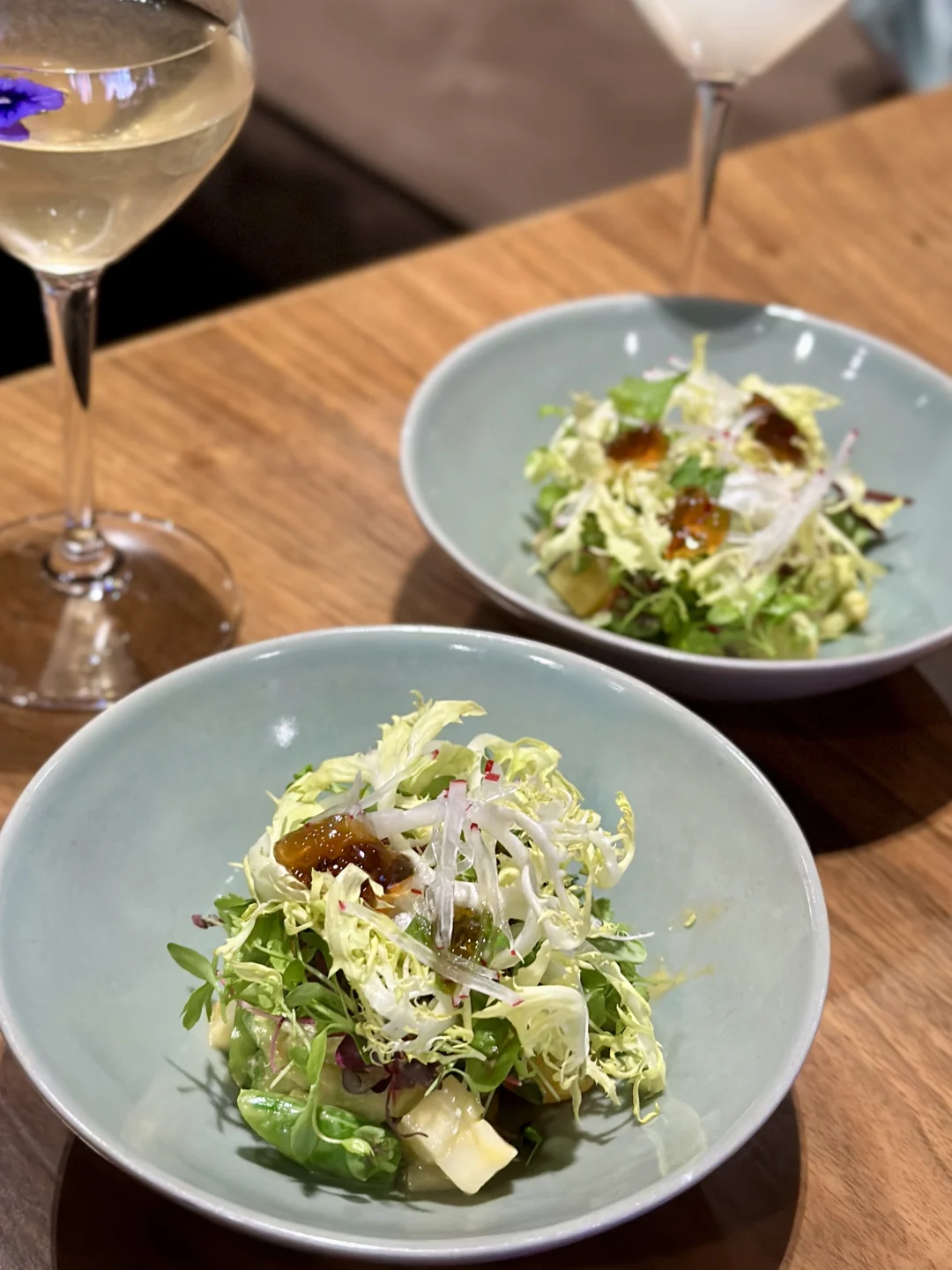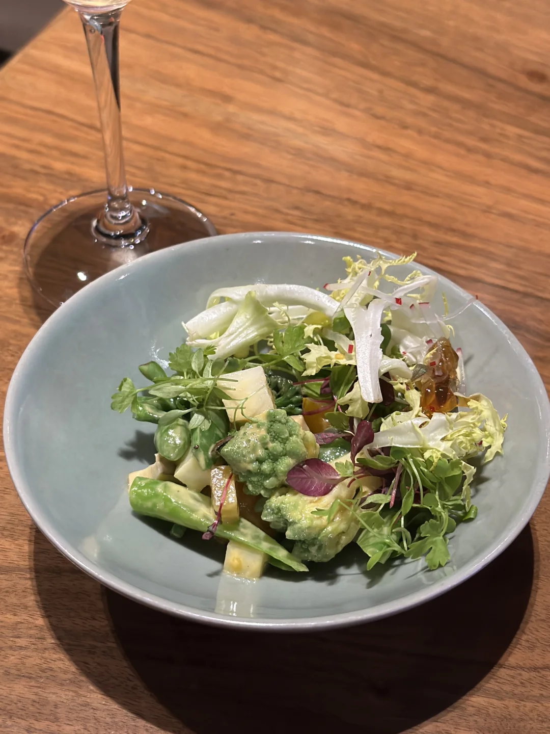 沙拉新鲜,每一片叶子都好多汁!怀石料理,以季节变化为灵感。春季沙拉,绿叶菜多多,每一口都感觉是春的味道。调味克制,很日本。