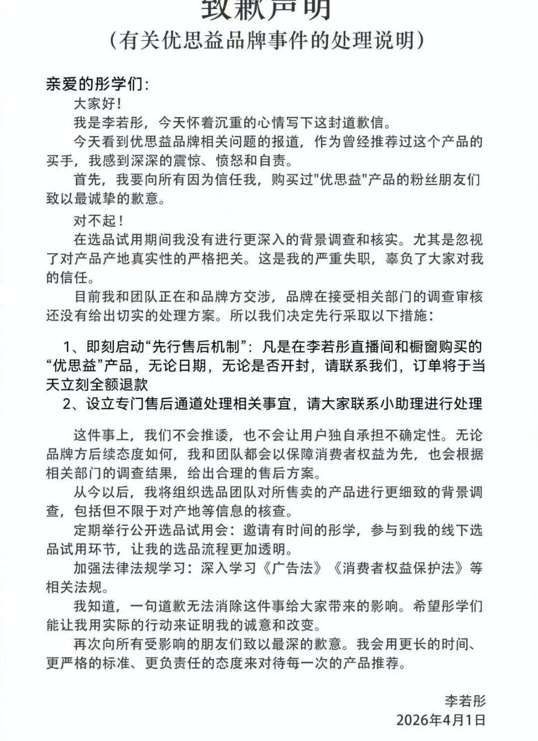 然后平台动了,多家电商连夜下架,超千个带货账号禁言,有报道说与辉同行直播间卖过,销售额冲到上千万,成了重要渠道,明星阵容也热闹,章小蕙李若彤明道都上过场,事件一炸,纷纷道歉,承诺全额退款,这波操作,到底谁买单