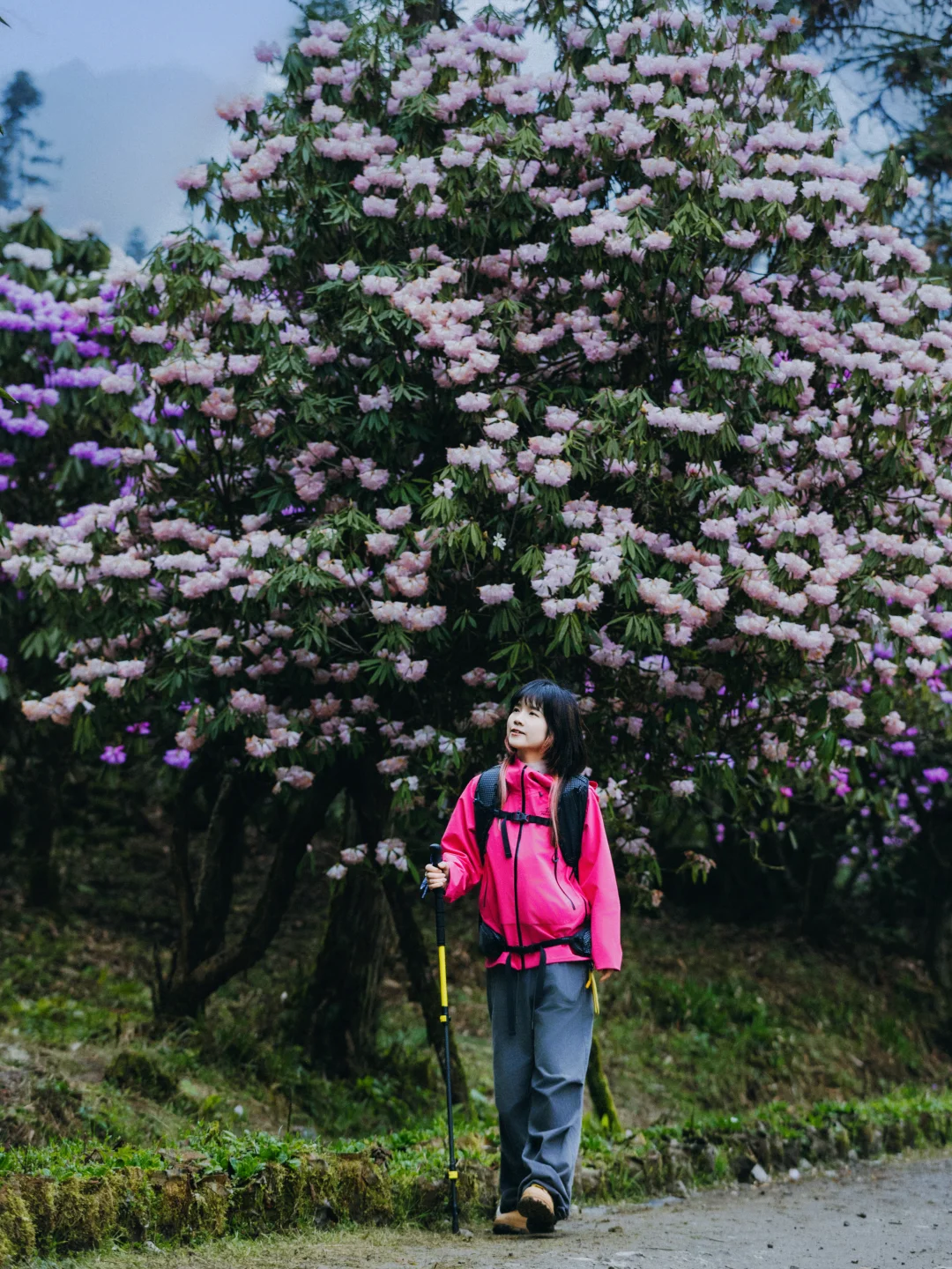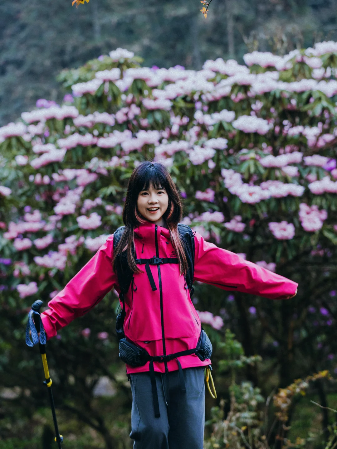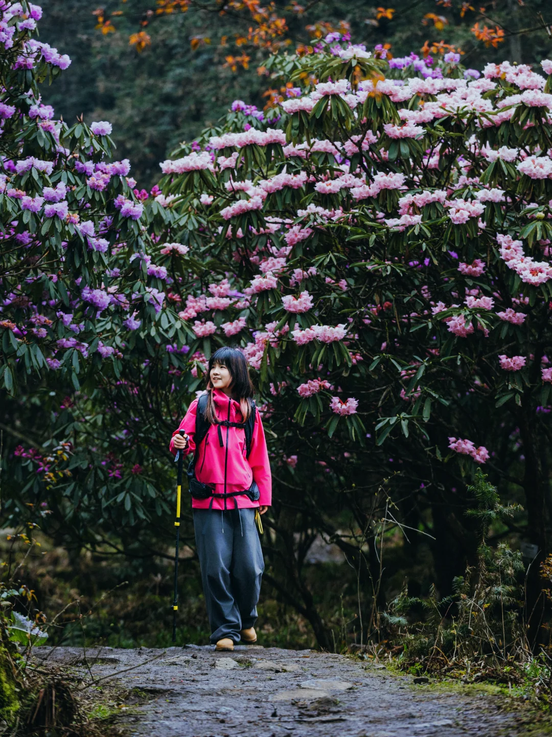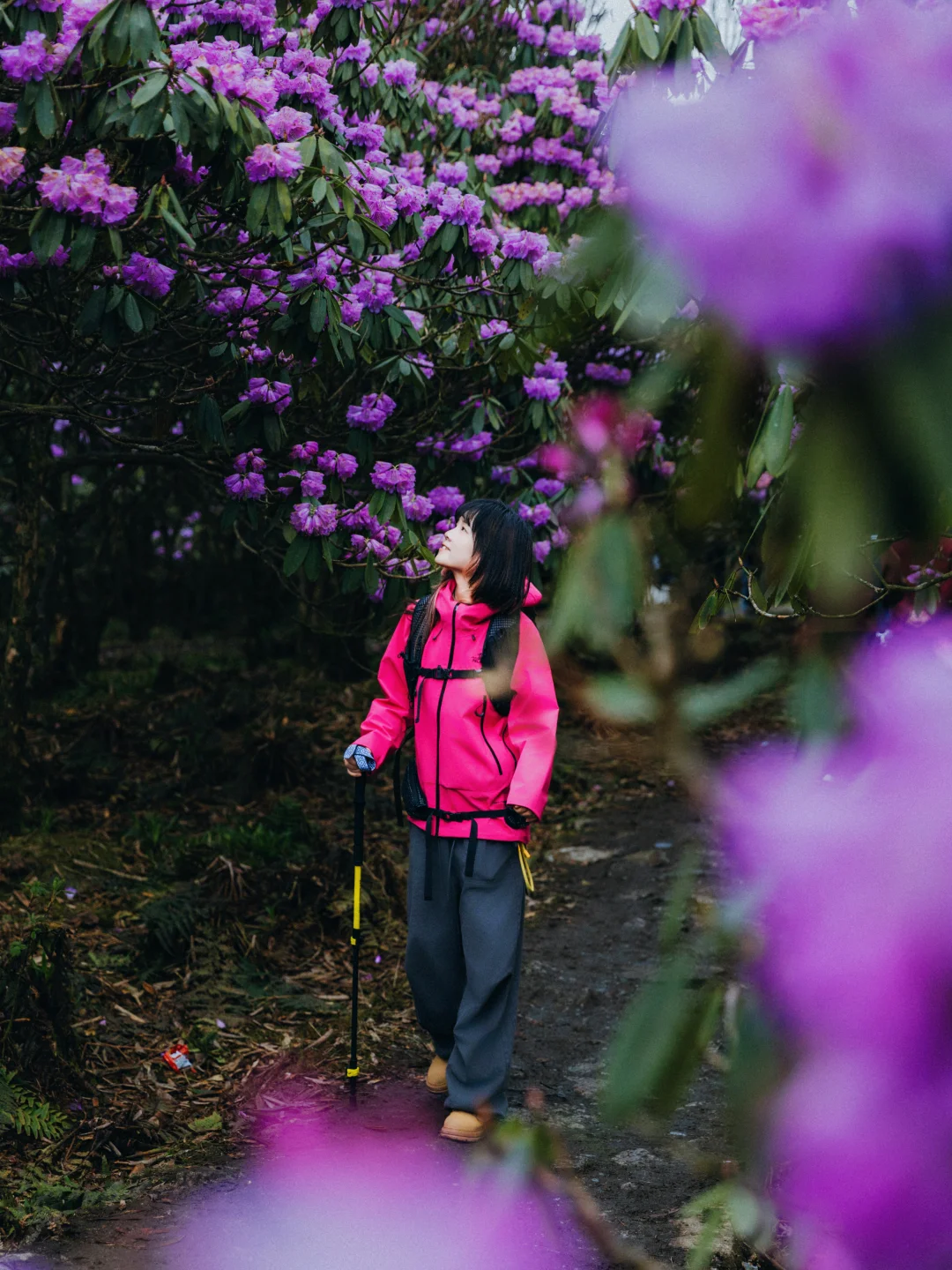✅首选:户外冲锋衣,我选的和杜鹃花一个色调的,去的时候,阴雨天,所以亮色系,人物会更突