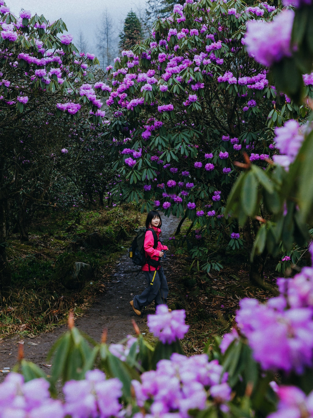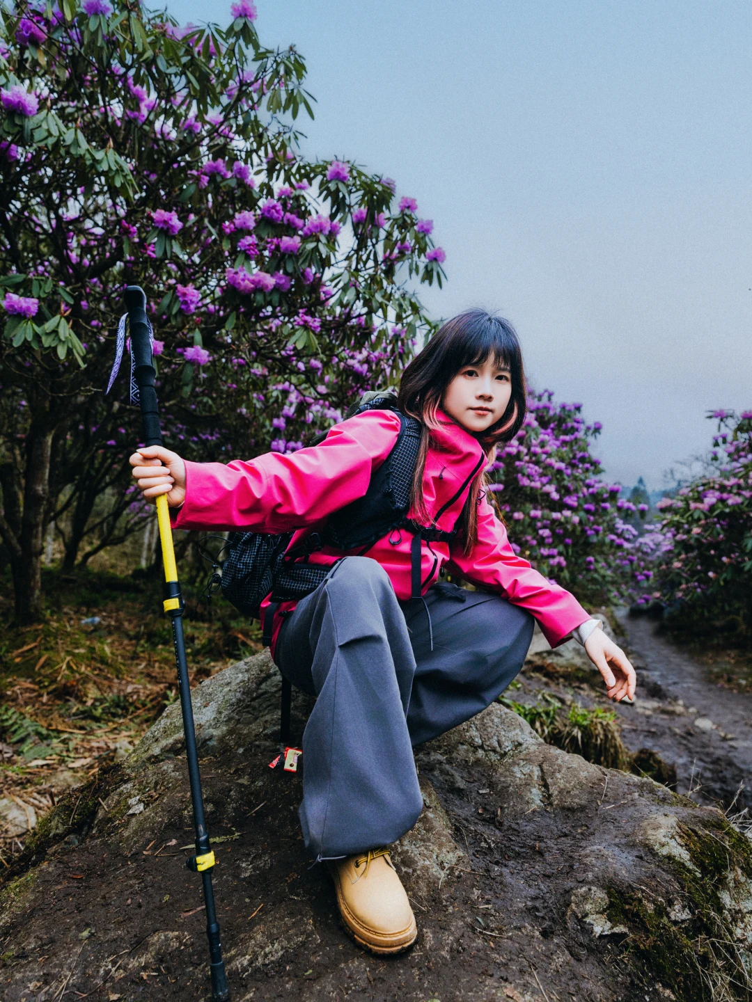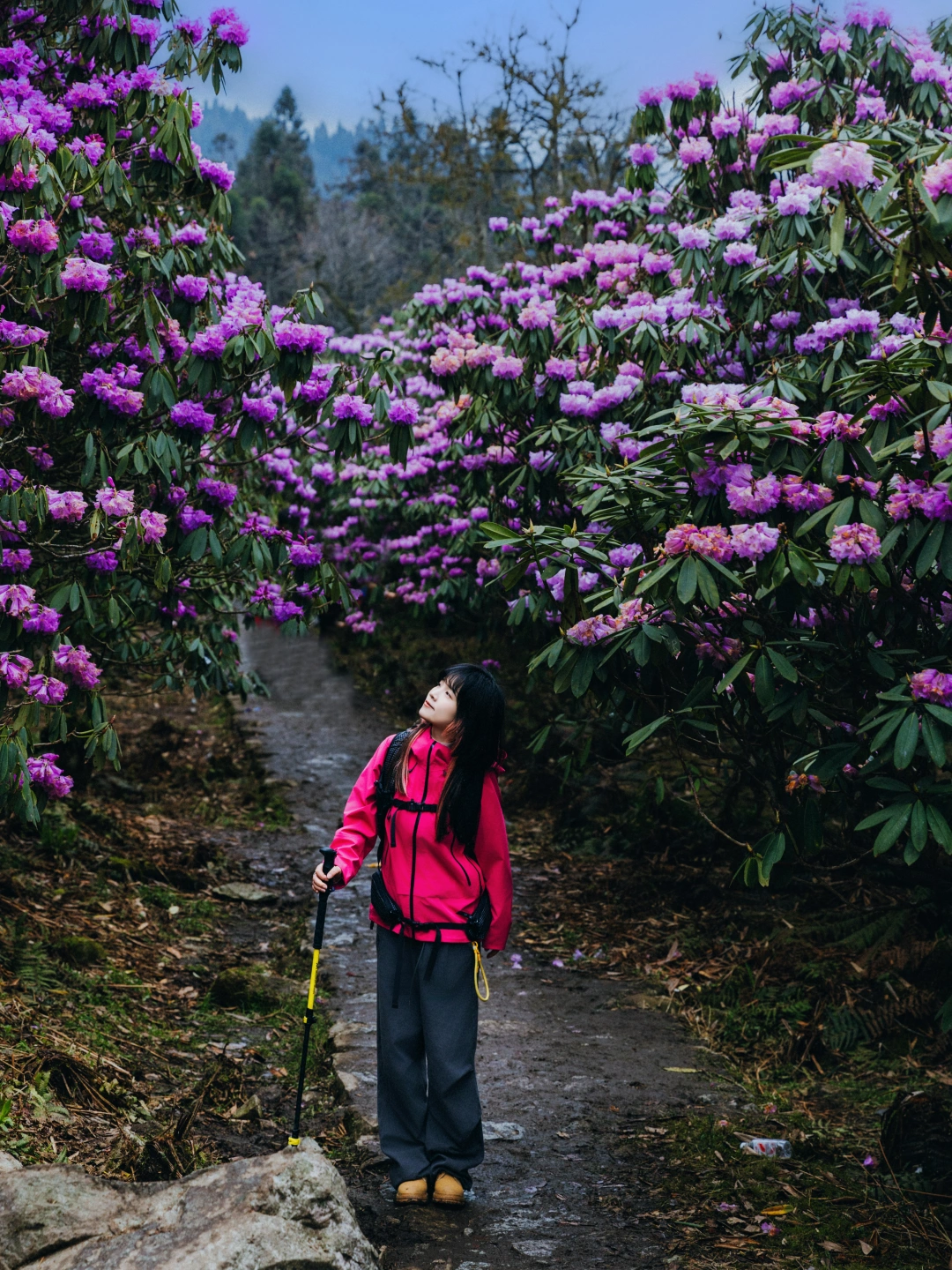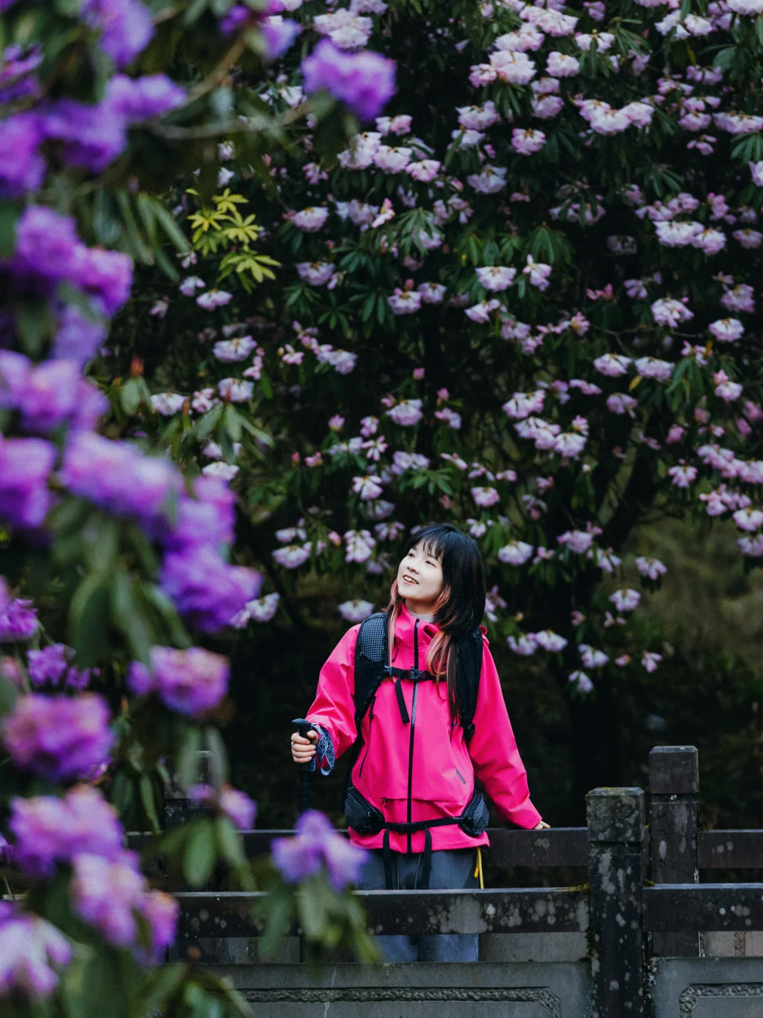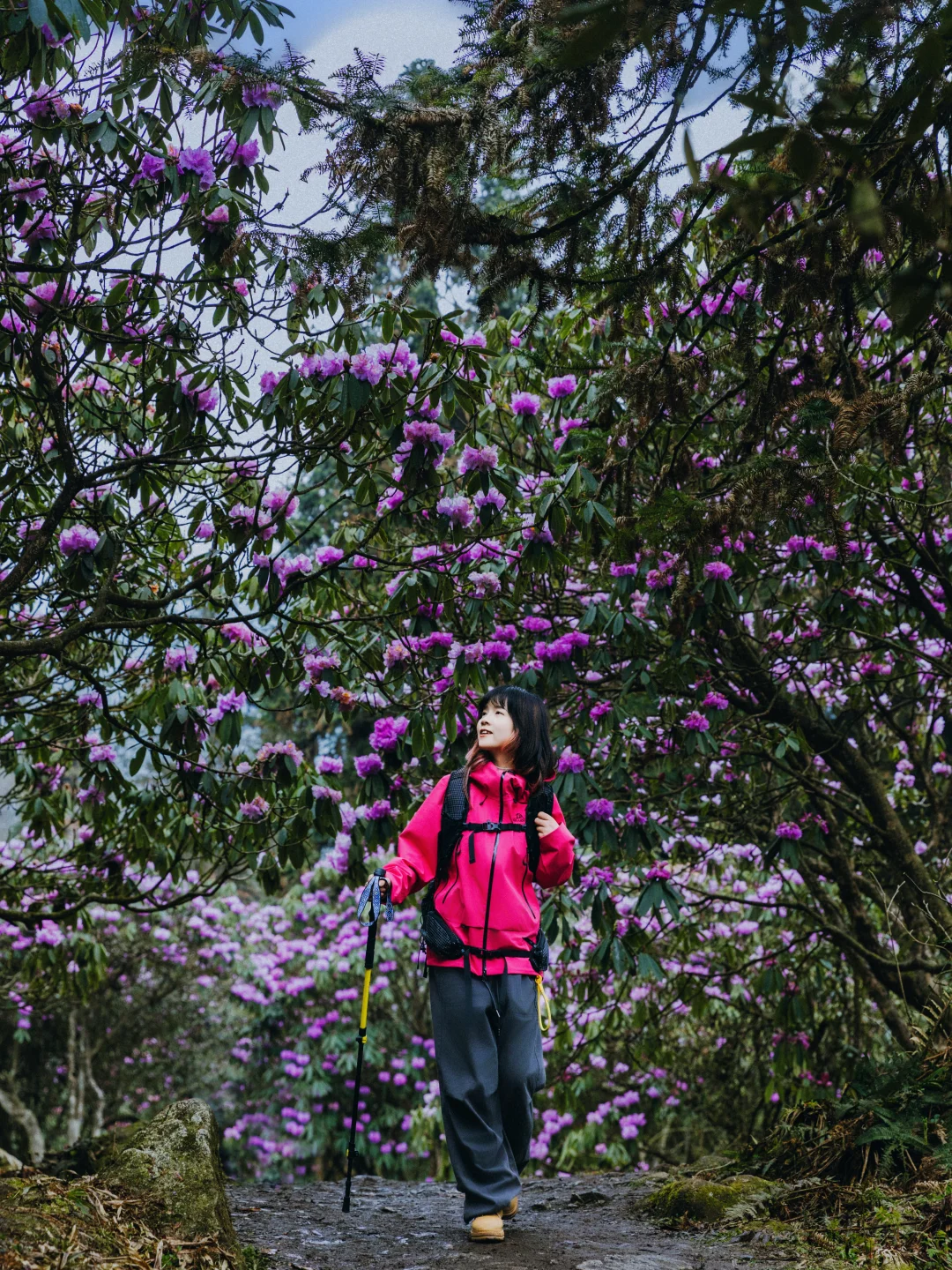 ✅首选:户外冲锋衣,我选的和杜鹃花一个色调的,去的时候,阴雨天,所以亮色系,人物会更突