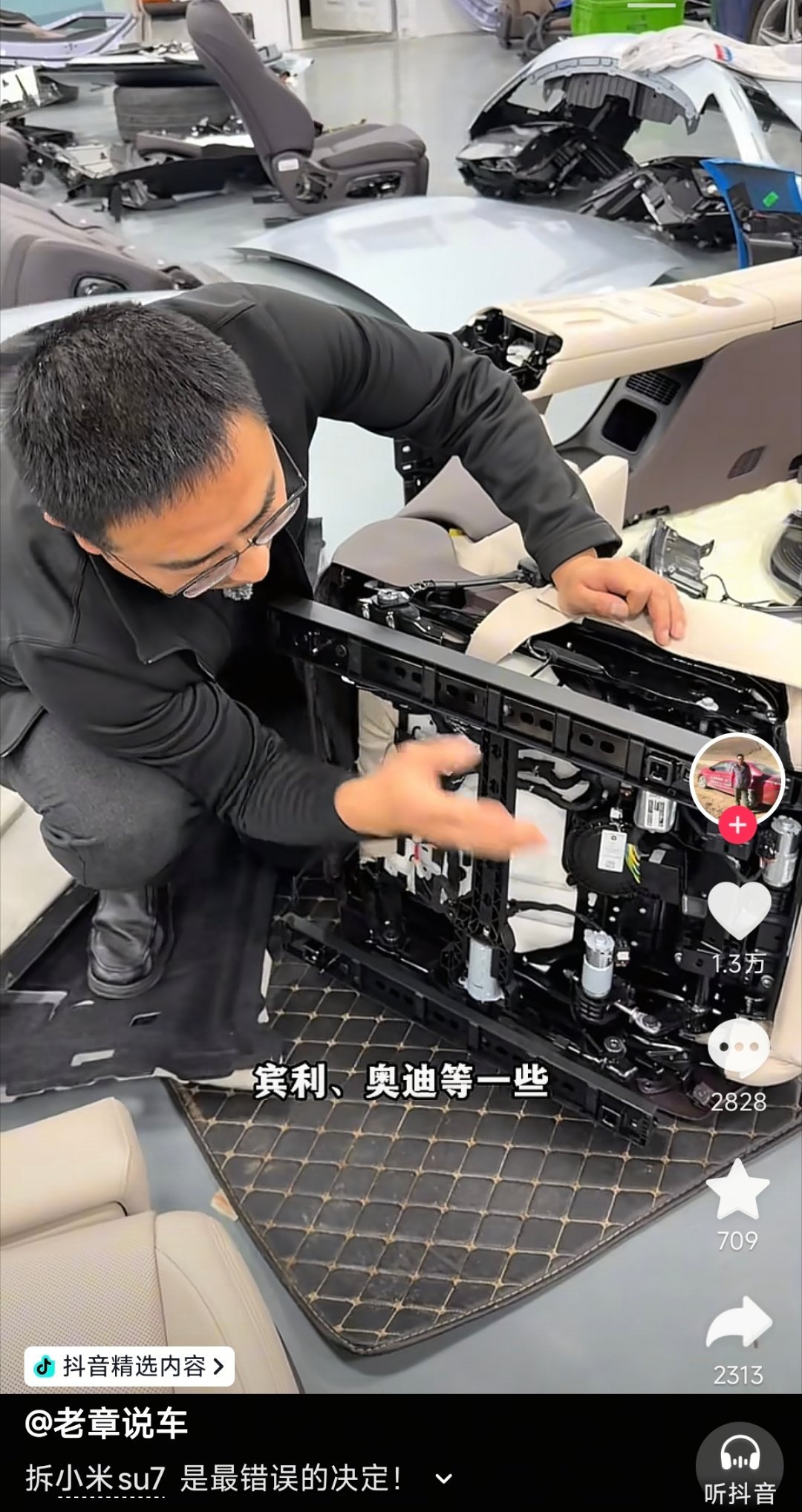 新一代SU7座椅电机品牌是:「凯博」。宾利、奥迪等超豪华品牌都用这个电机。小米汽