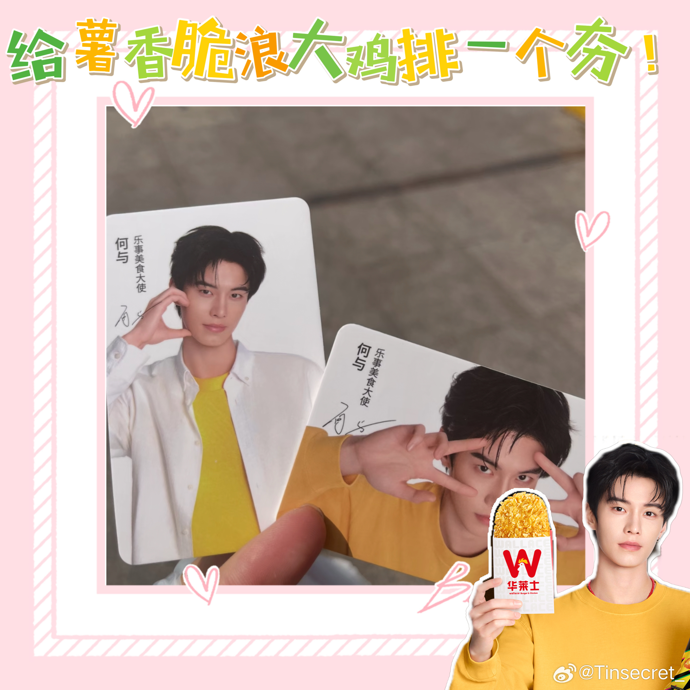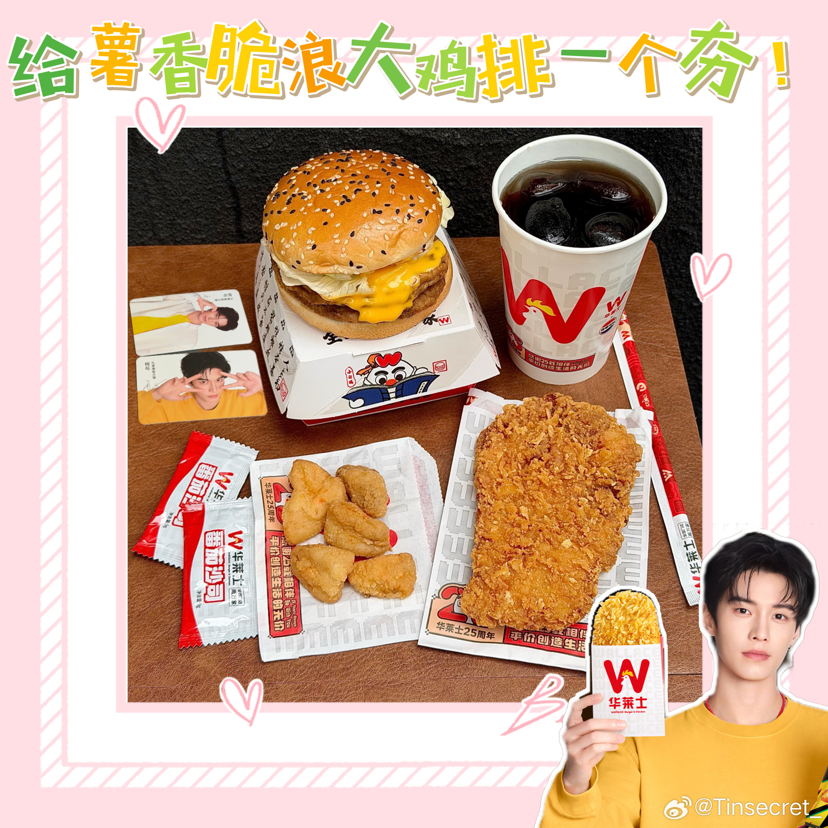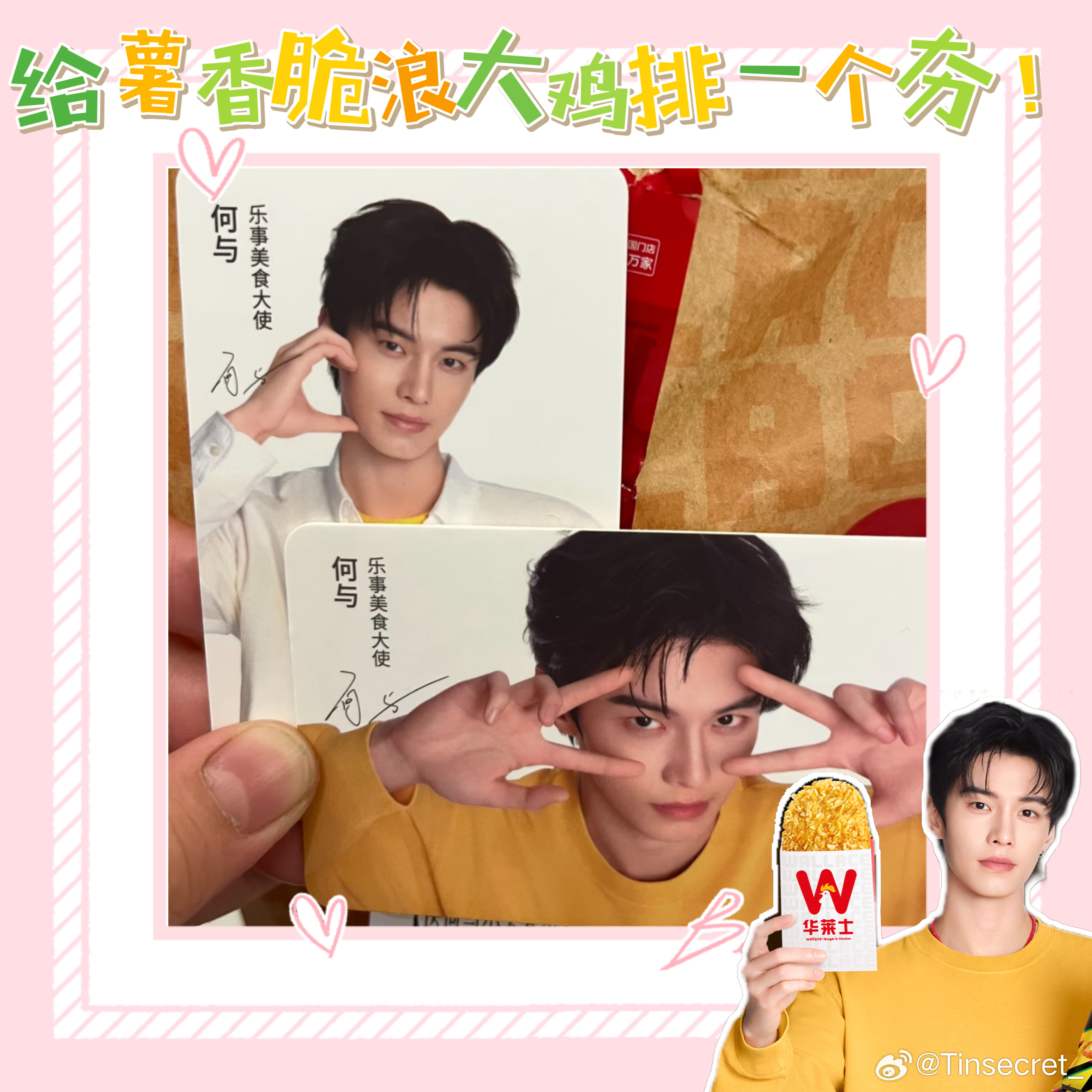 所以这次看到他和华莱士合作,还出了限定小卡,我是真的又惊喜又开心。吃个鸡排还能支持喜欢的人,这种感觉谁懂啊!