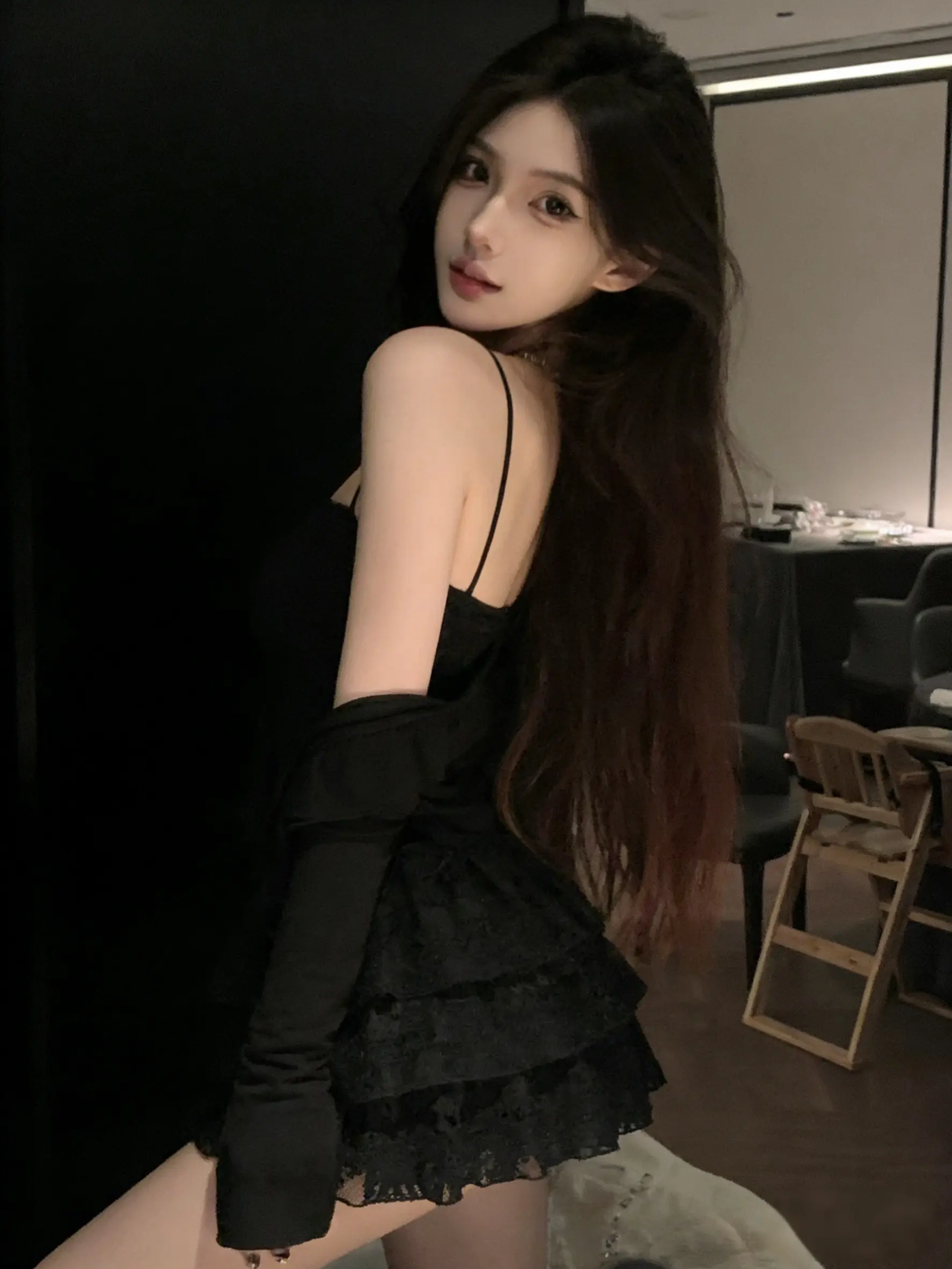御姐控 纯欲天花板 黑色蕾丝裙 清冷系情感 御姐风