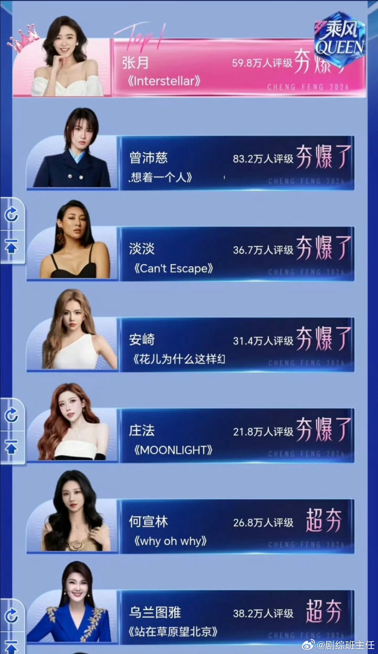 曾沛慈张月投票人数因为乘风Queen曾沛慈比张月投票评级人数多但排名在第二引发争