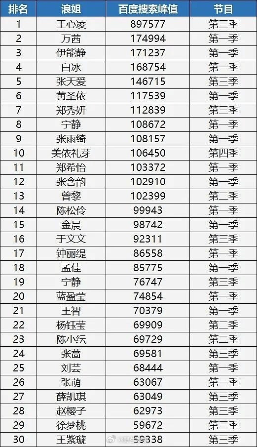 浪一是节目大爆,很多姐姐脱素入糊,浪三是王心凌个人大爆,直接让她从四大三小快垫底
