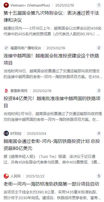 未来的某一天,当你坐着火车从昆明出发,沿着标准轨一路南下,穿过老街,经过河内,直达海防港,你会意识到:那条连接两国的铁路,不仅运载着货物和旅客,更承载着整个区域经济发展的希望。而这一切,就从2025年2月19日那455张赞成票开始。