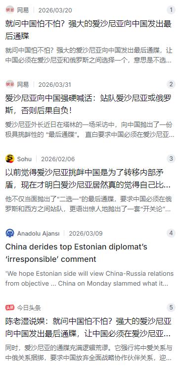 就问中国怕不怕?强大的爱沙尼亚向中国发出最后通牒,让中国必须在爱沙尼亚和俄罗斯之间选择一个,意思是不选他们后果自负,“要么站在爱沙尼亚这边,要么与俄罗斯为伍,不选后果自负!