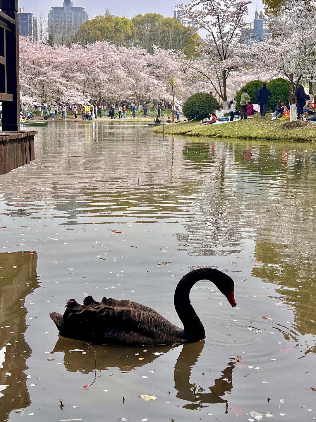 暴雨之后的樱花还在盛开 走在下面时不时的飘落下来花瓣🌸