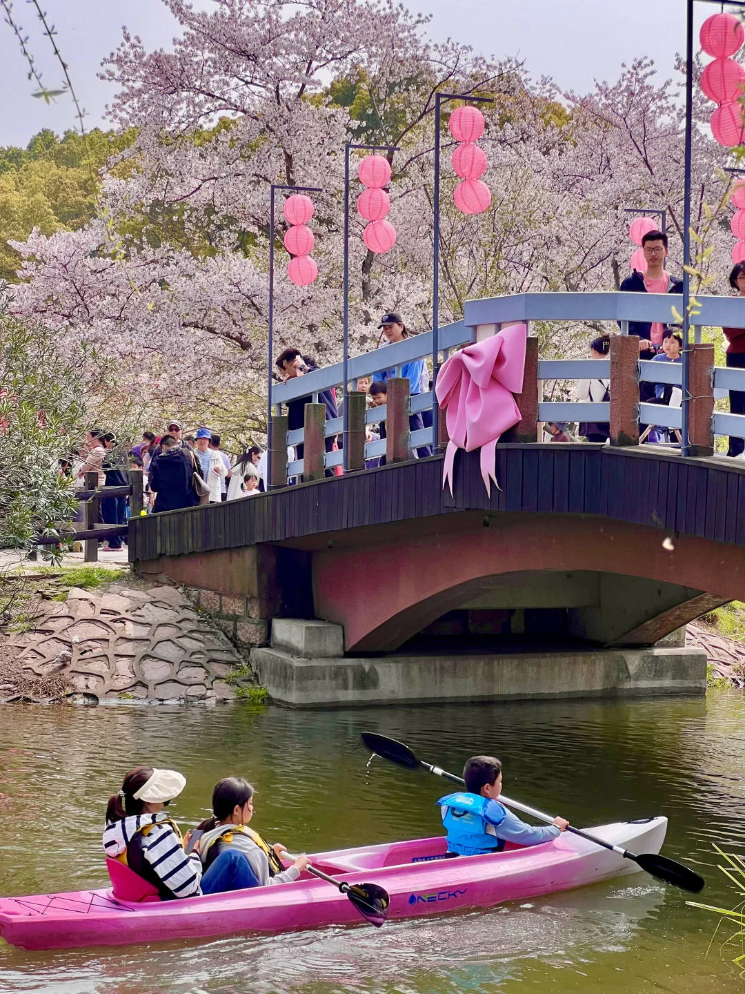 🌸樱花:樱花岛的染井吉野樱和大岛樱交错分布,河边是一圈垂枝樱