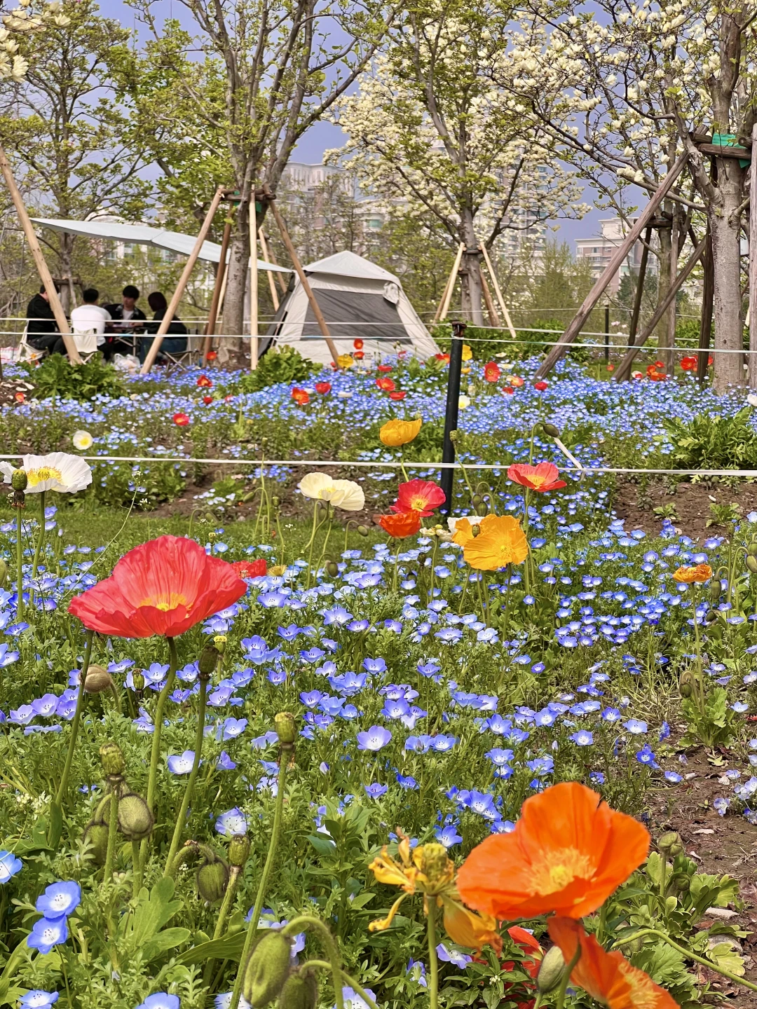 🌼虞美人:喂鸽子的小桥下来就是虞美人草地,阳光下闪烁的像星星💫