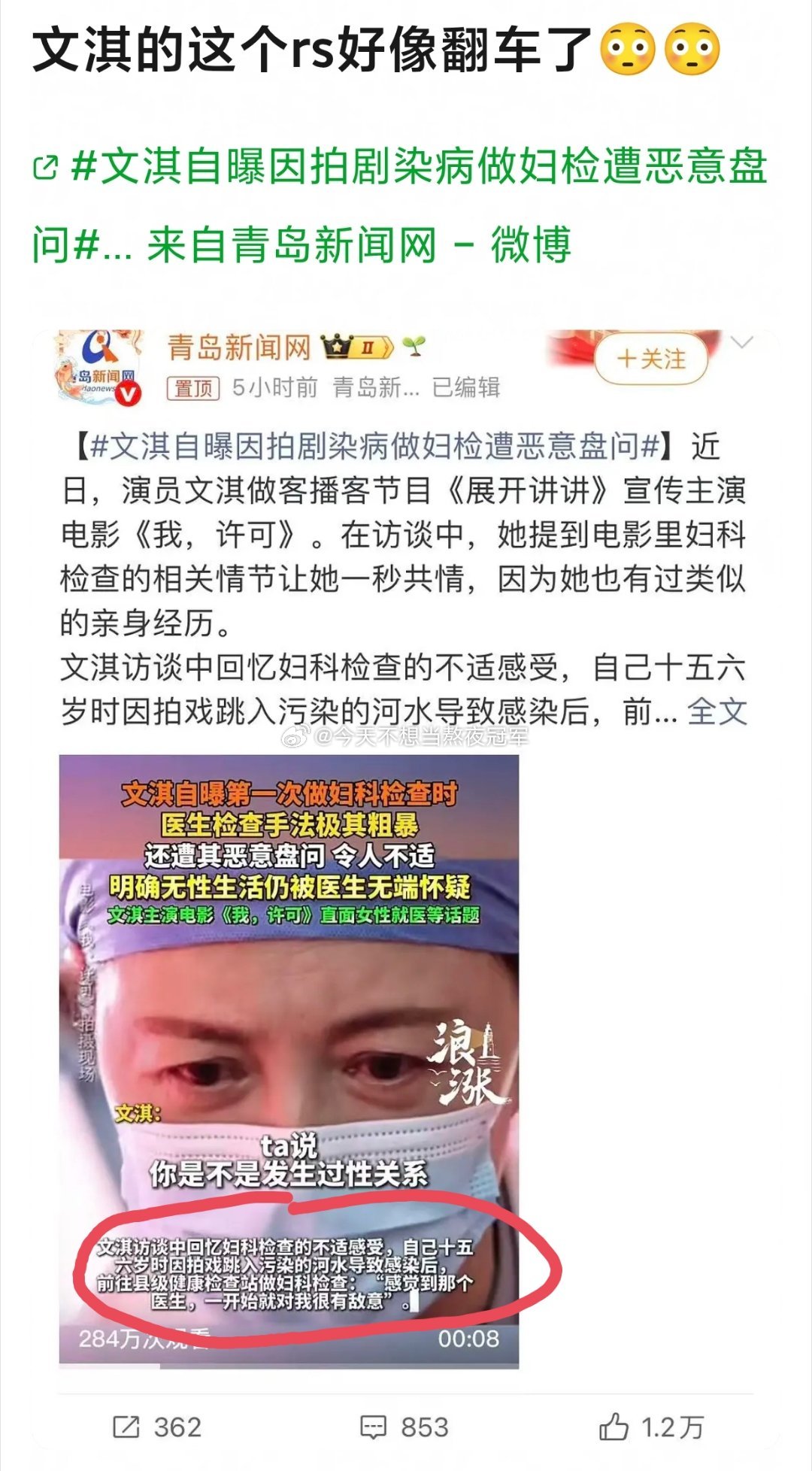 文淇宣传新片《我许可》谈到自己15岁时接受妇 科检查的经历,这段发言好像翻🚗了。。。