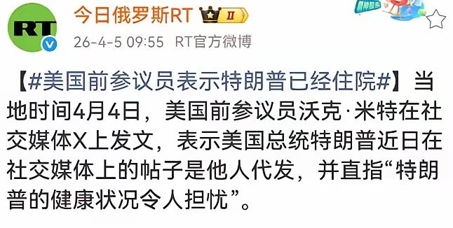 最近美国政坛又出大新闻了!4月4号那天,前参议员沃克·米特突然在社交媒体上连发几条消息,说特朗普身体状况特别差,已经住进沃尔特·里德医疗中心,甚至可能“随时会挂”。