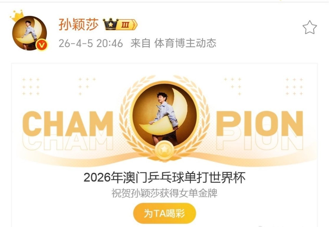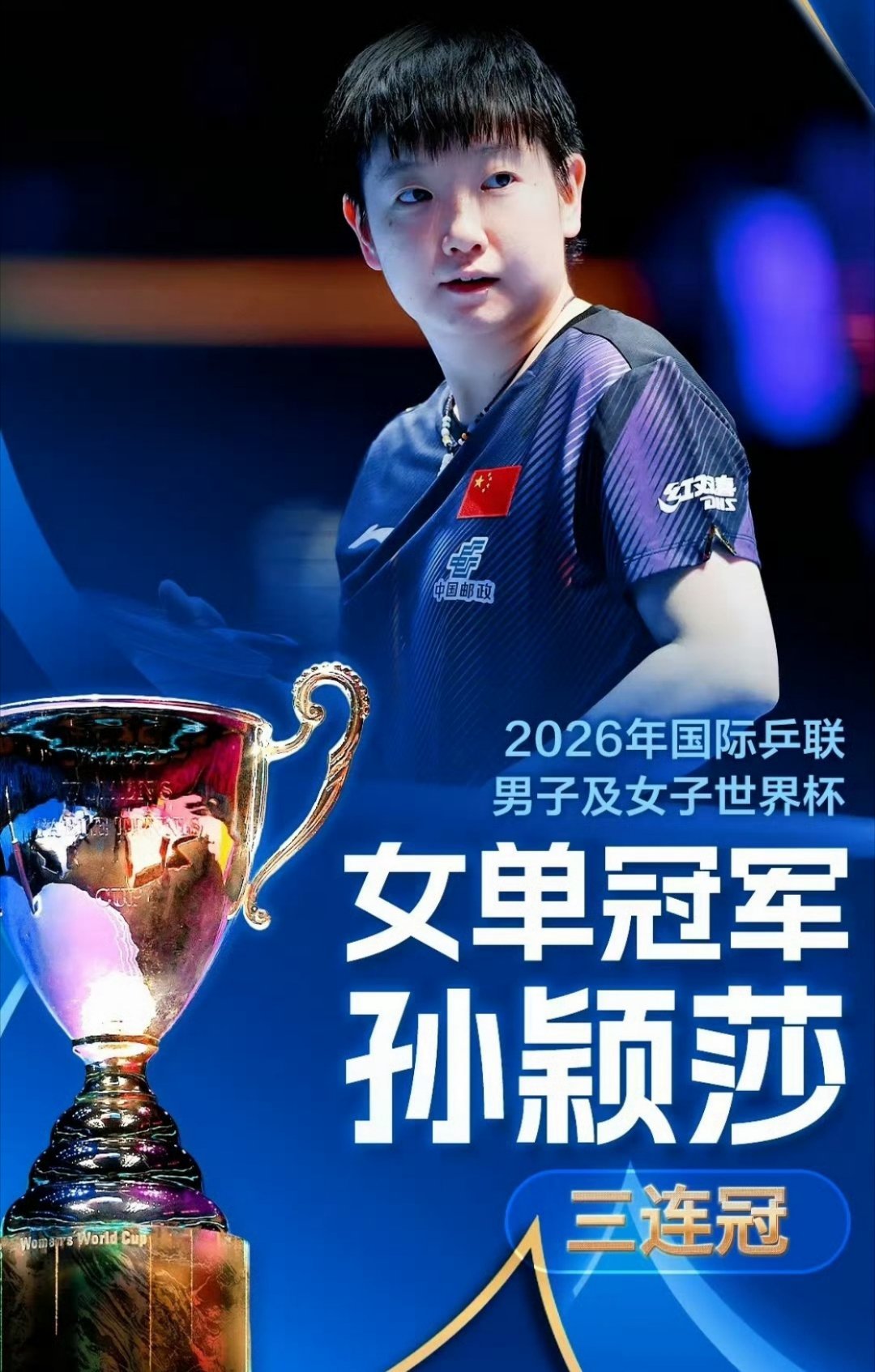 报📣📣孙颖莎成为1973年乒乓球世界杯创办以来第一位女子单打三连冠🥳🏆?