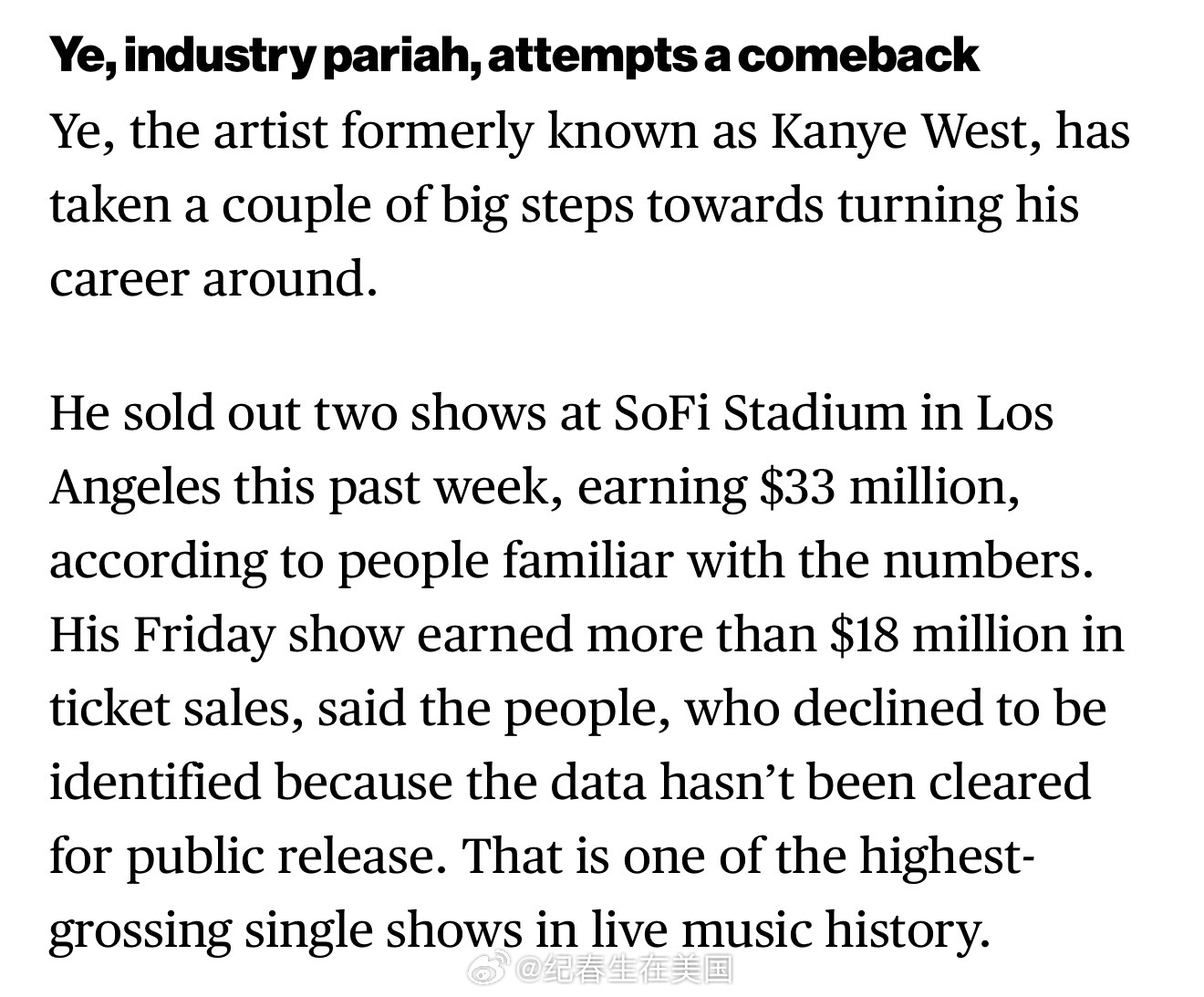 侃爷两场演唱会,3300万入袋。💰今日焦点海外新鲜事坎耶·维斯特侃爷ye