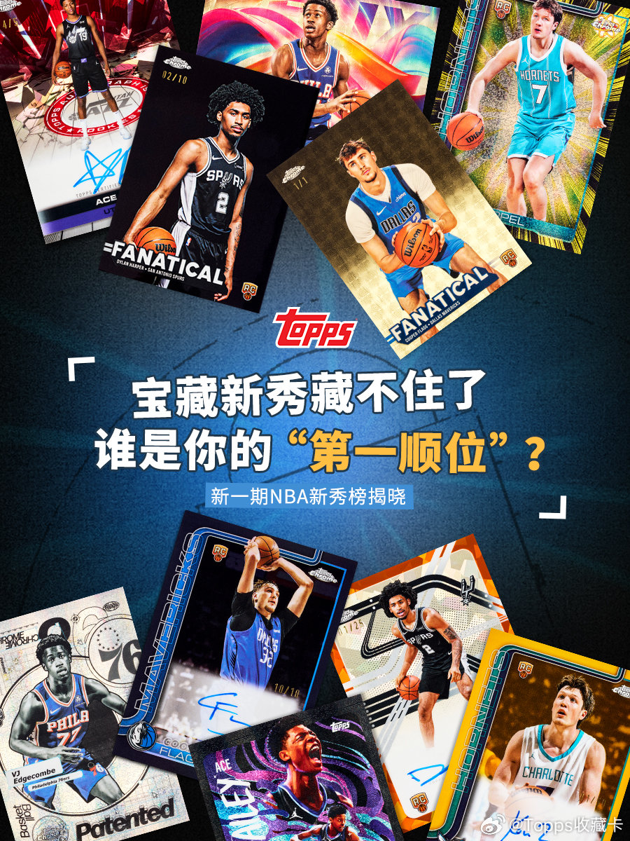 NBA新秀榜更新,谁是下一个卡圈顶流?NBA Rookie Ladder最新排名揭晓——Topps用一张张卡片,把这些少年从青涩到王者的路,完整记录了下来。