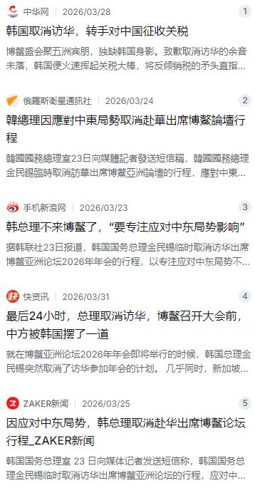 先把时间轴拉回到2026年3月下旬。当时博鳌亚洲论坛正在海南热热闹闹地开着,六十多个国家和地区的代表都来了,场面挺大。原本韩国那边也答应得好好的,说是要让国务总理金民锡亲自到场,而且行程早就定好了,从3月24日到27日,连在北京要谈什么议题都提前沟通得差不多了。可谁能想到,就在论坛开幕前一天,韩国那边突然变卦了。韩国国务总理室发了条短信通知,说总理不来了,理由是中东那边局势不太平,得留在国内盯着经济别出乱子。