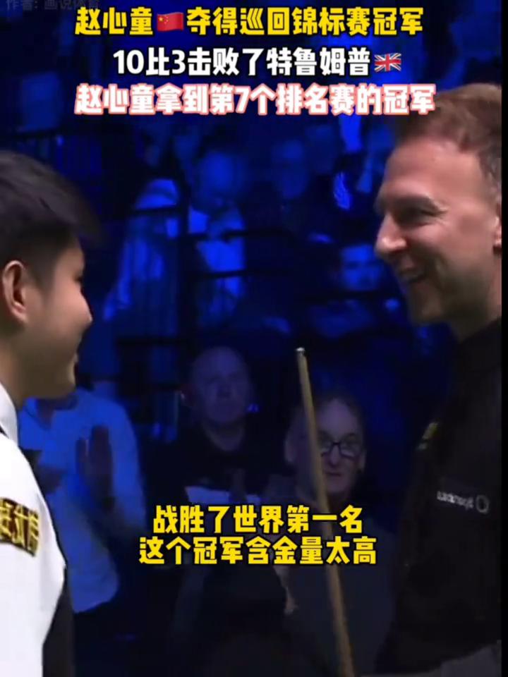 赵心童夺得巡回锦标赛冠军,10比3击败了特鲁姆普。