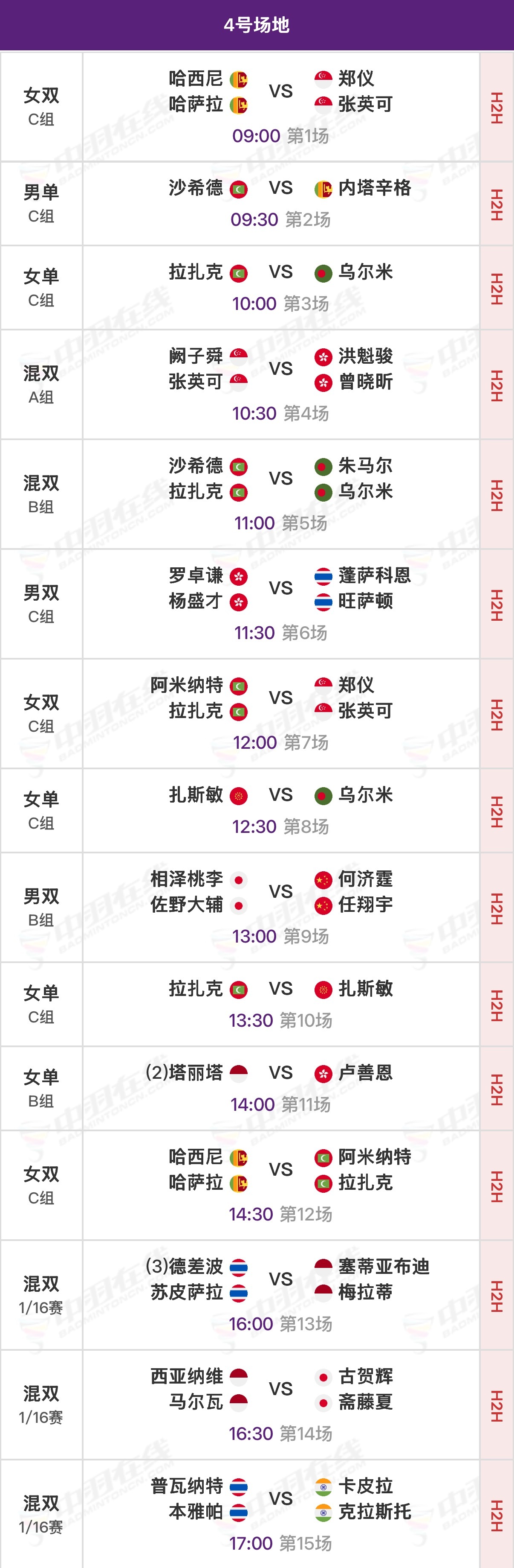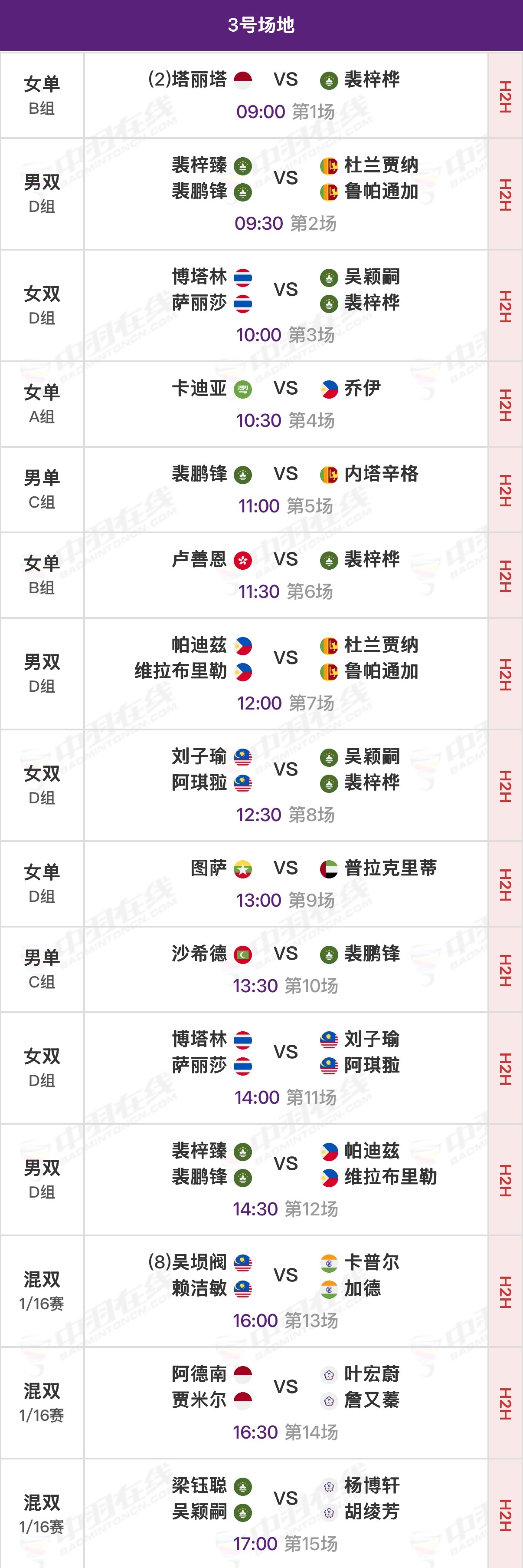 【一号场地】⑫🇨🇳郭新娃/陈芳卉vs吴冠勋/李佳馨ᴛᴘᴇ⑬🇨🇳程星/张驰vs邓俊文/谢影雪🇭🇰⑭🇨🇳冯彦哲/黄东萍vs帕克卡波/沙西丽🇹🇭