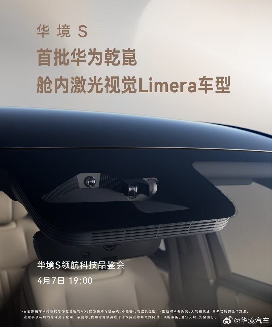 根据官方最新消息,华境 S 领航科技品鉴会已定档 4 月 7 日 19:00 举行。这款新车全系标配华为乾崑智驾 ADS Pro 增强版,还将首批搭载华为乾崑舱内激光视觉 Limera。