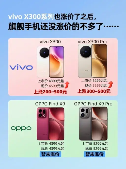 vivo X300系列涨了两三百到五百, 其他几家也跟着涨了一波