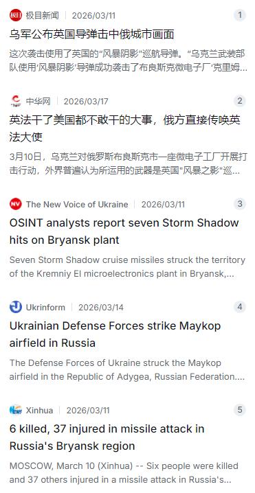 2026年3月10日,俄罗斯布良斯克市的克里姆尼埃尔微电子厂遭到导弹袭击。俄罗斯官方通报显示,此次袭击造成6人死亡、37人受伤。乌克兰方面随后公开承认,这次打击使用了英国提供的“风暴阴影”巡航导弹,并宣称这家工厂是俄军高精度武器(包括“伊斯坎德尔”导弹)的电子元件供应商,相当于导弹的“大脑”和“神经系统”。