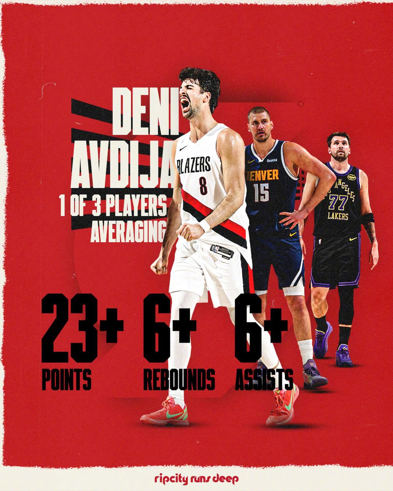 进步最快球员这一块,阿夫迪亚能排到第几呢?今年得分和助攻都涨幅不小,个人入选全明星。同时还是仅有的三位有至少场均23+6+6的球员,尽管这项数据对比另外两位来说有点点像定制数据,但同样展示了阿夫迪亚的全能属性。