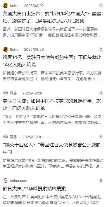 “饿死十四亿人?”美国大使放下狠话:只要中国不听话,不低头,就要卡粮断油,让十四亿人挨饿受穷!
