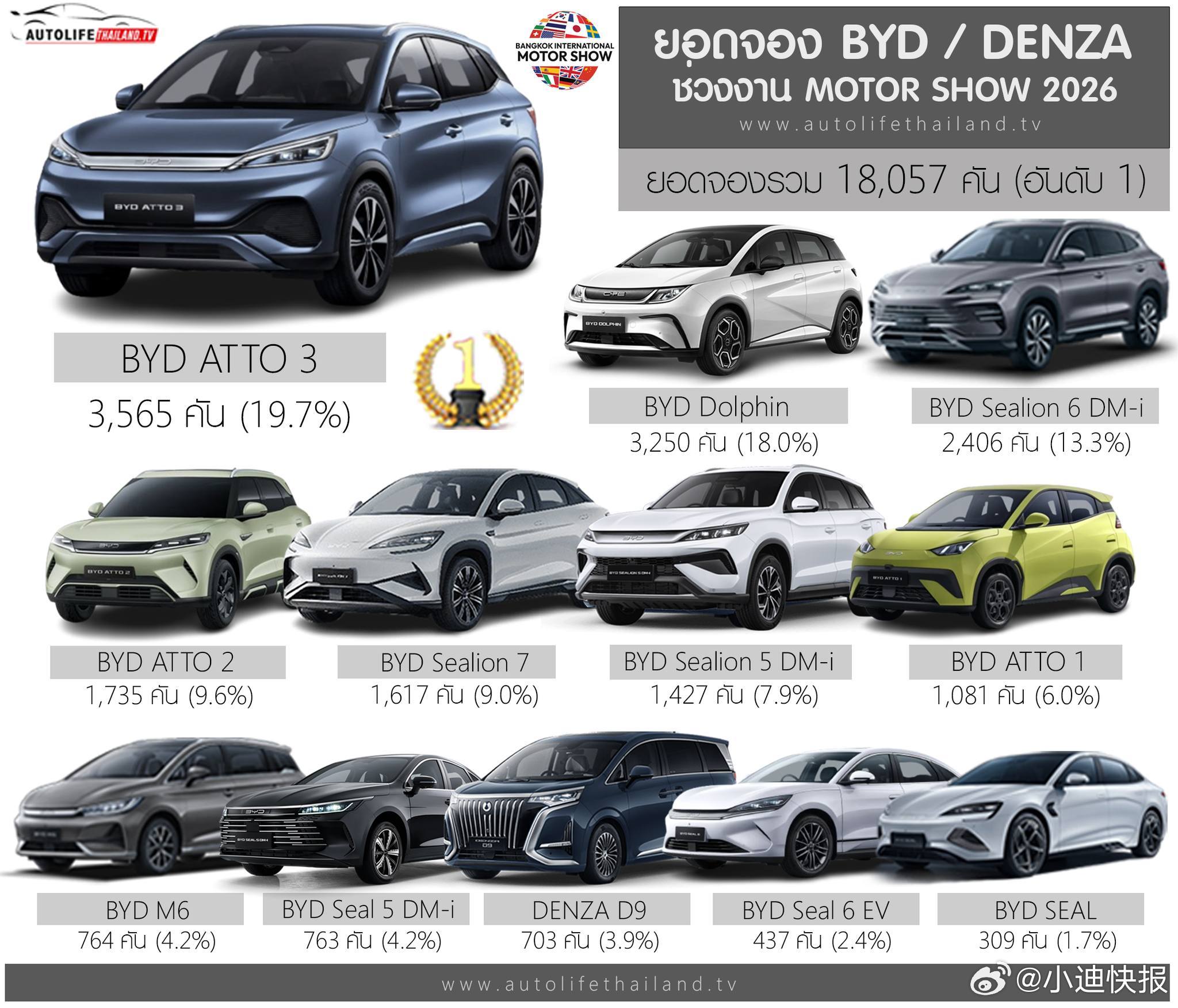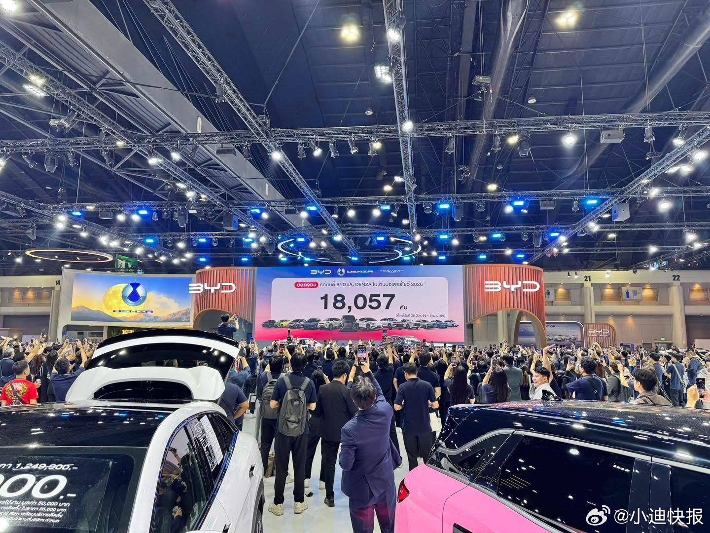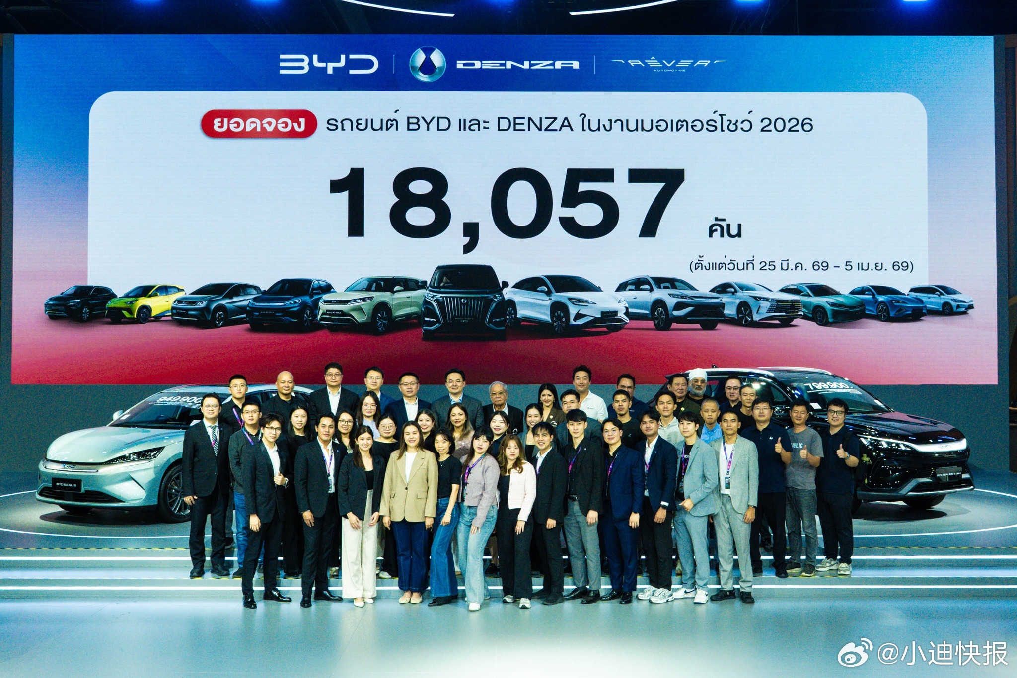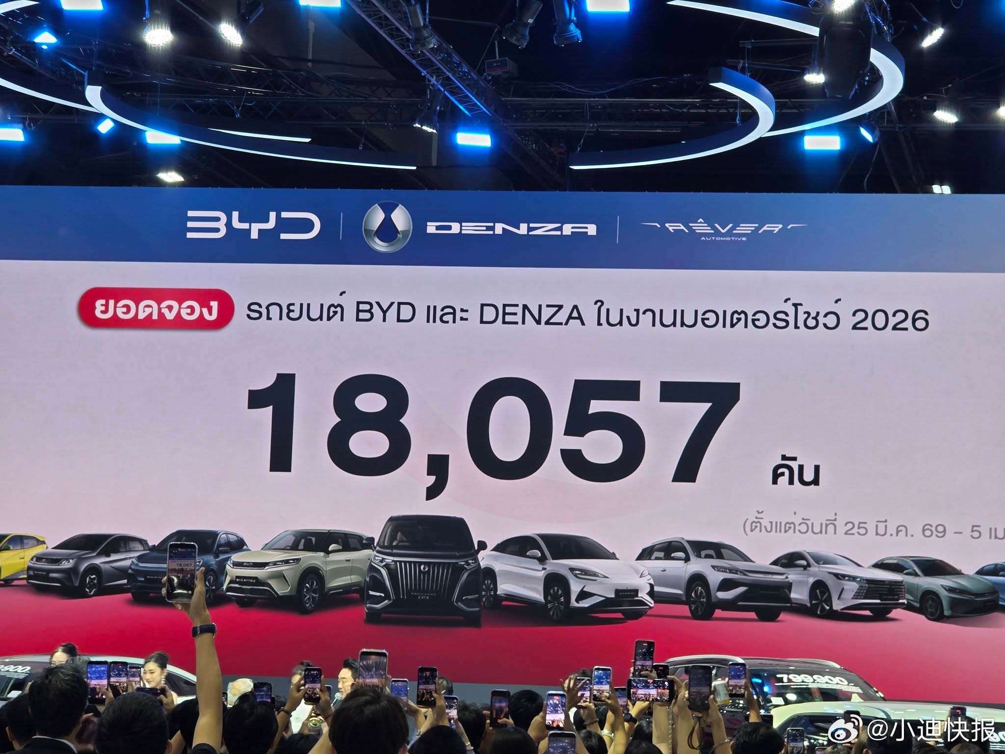 18057辆!比亚迪泰国曼谷车展订销夺冠!其中比亚迪品牌17354辆、腾势品牌703辆较2025年10353辆,本次车展订销增长74%再创中国汽车品牌在泰国车展订单历史新高!