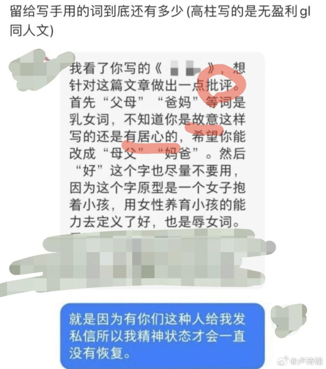 再然后,是宝妈这样的中性词汇,因为忽视女性主体,而强调“母亲”的定义,所以也是厌女前两天交大宣传视频本质就是在吵这个,有的人认为这是中性词,但有的人眼里,这毫无疑问就是厌女词汇