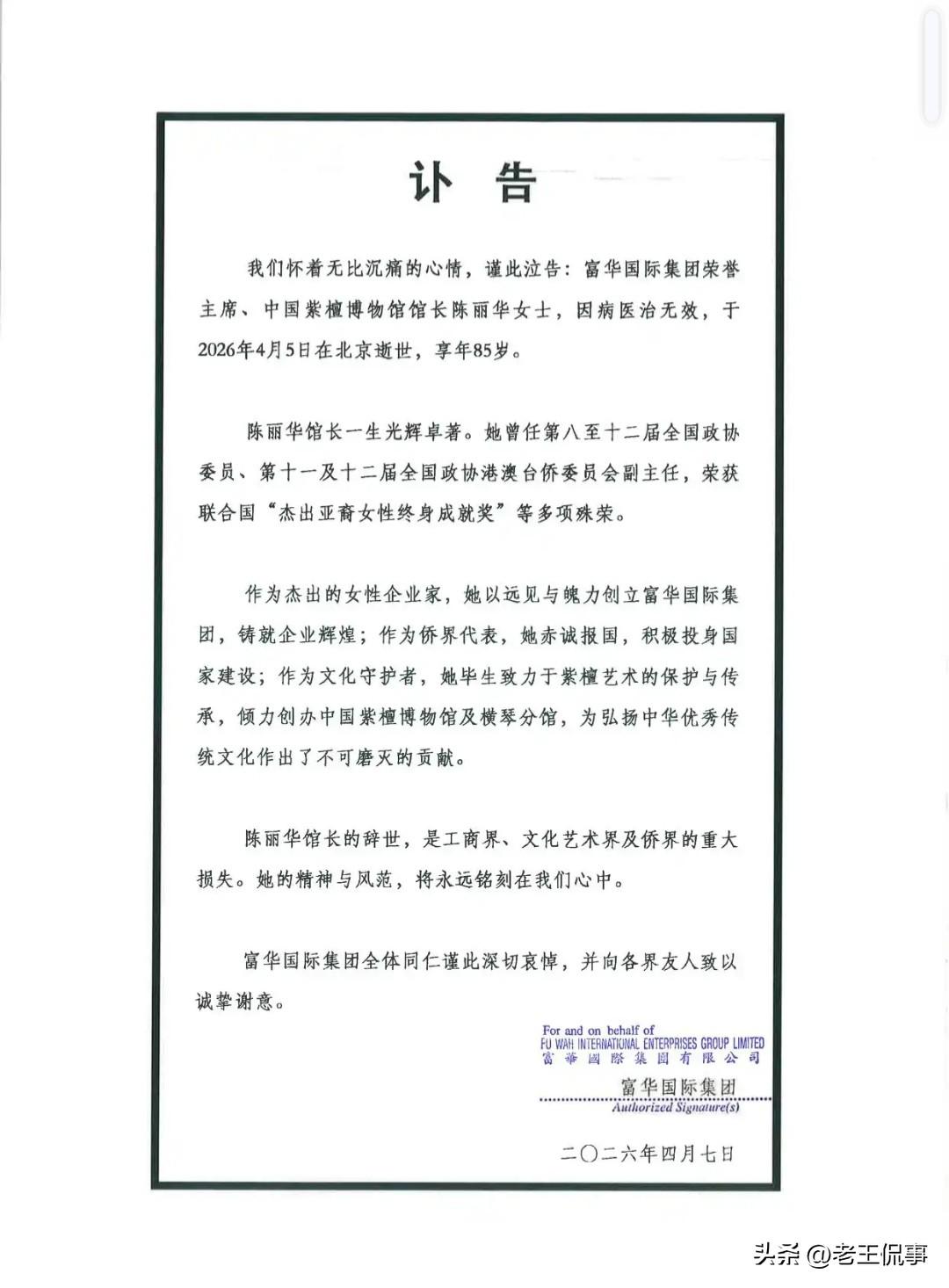 一代才女富华集团的创始人,迟重瑞的妻子陈丽华因病逝世,享年85岁。 陈丽华去世,唐长老又成为孤单的取经人,不同的是,身边再也没有师徒相伴,更没有女儿国国王的爱恋。 最遗憾的是唐长老这一生也没有和陈丽华有一个属于自己的孩子。