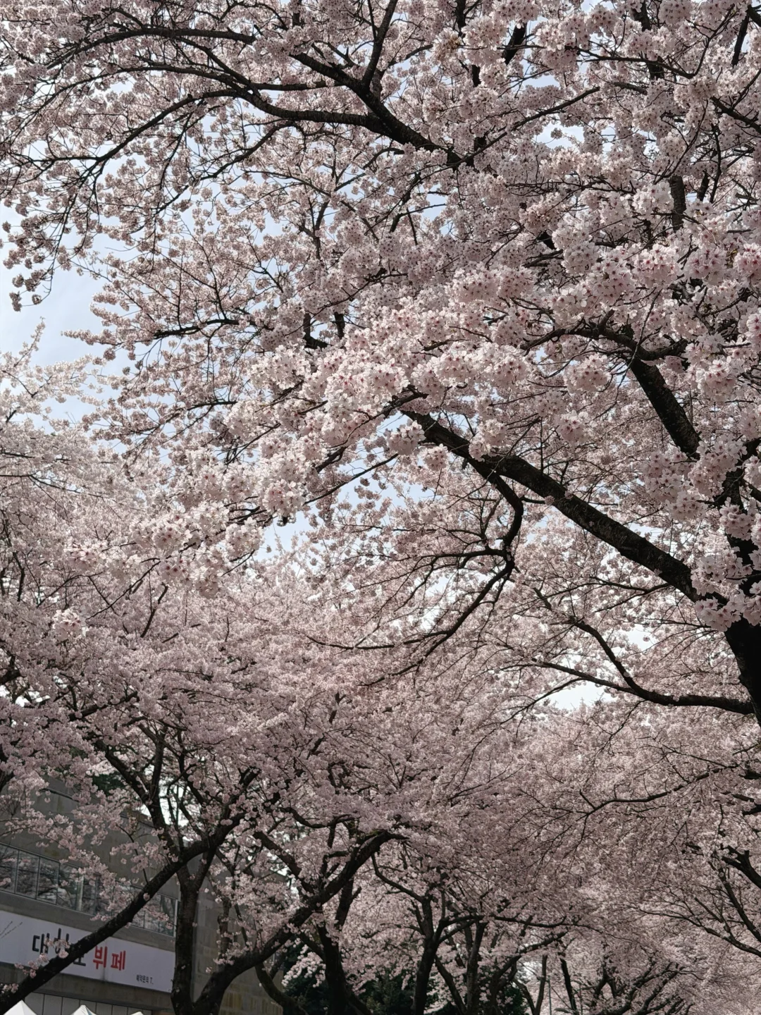 live直出,整条路都是粉白樱花隧道,风一吹就下樱花雨,韩剧青春感拉满。今天大部分时候阴天,出了一小会儿太阳,也很美。