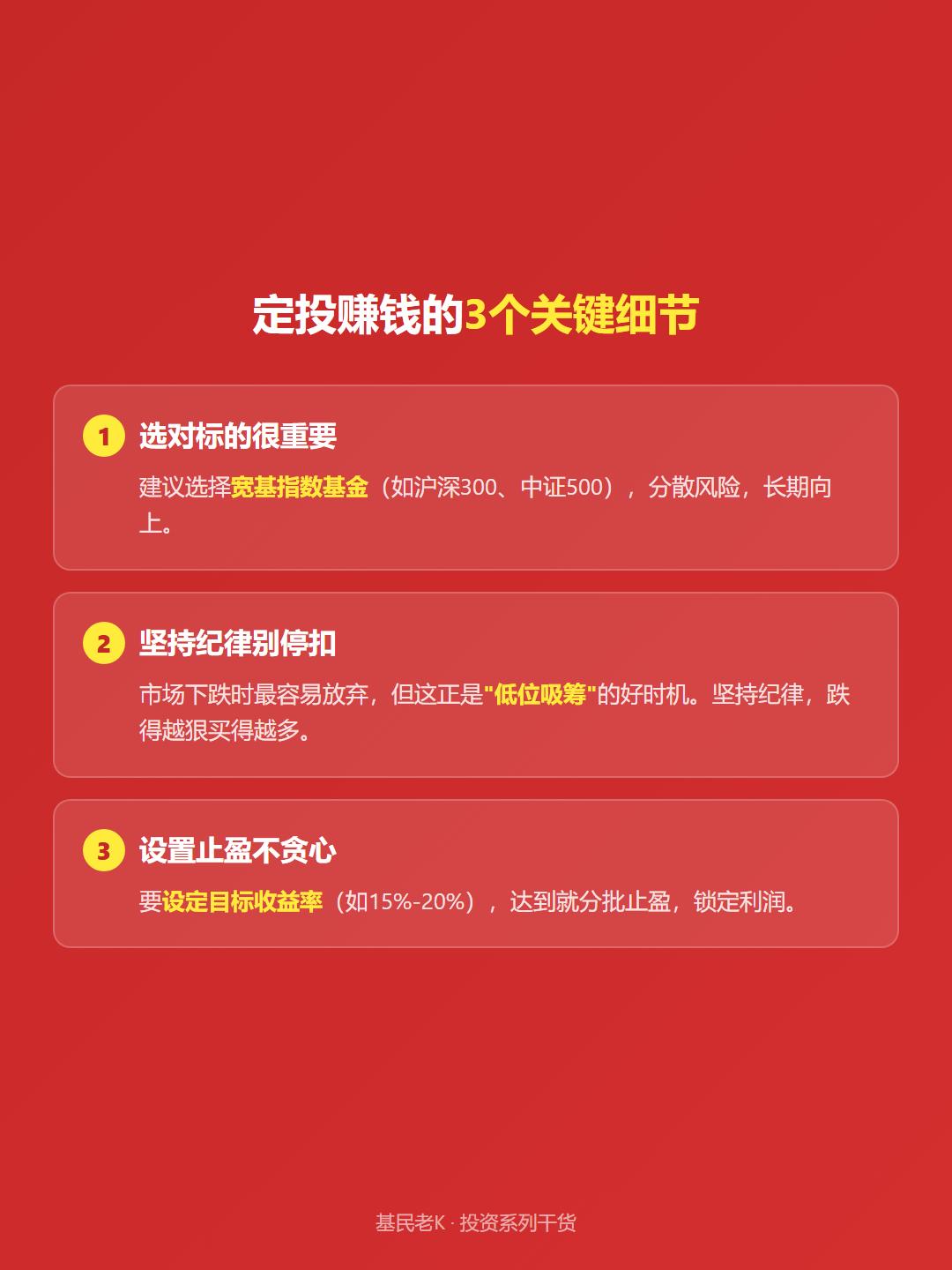💯 定投赚钱的3个关键细节: