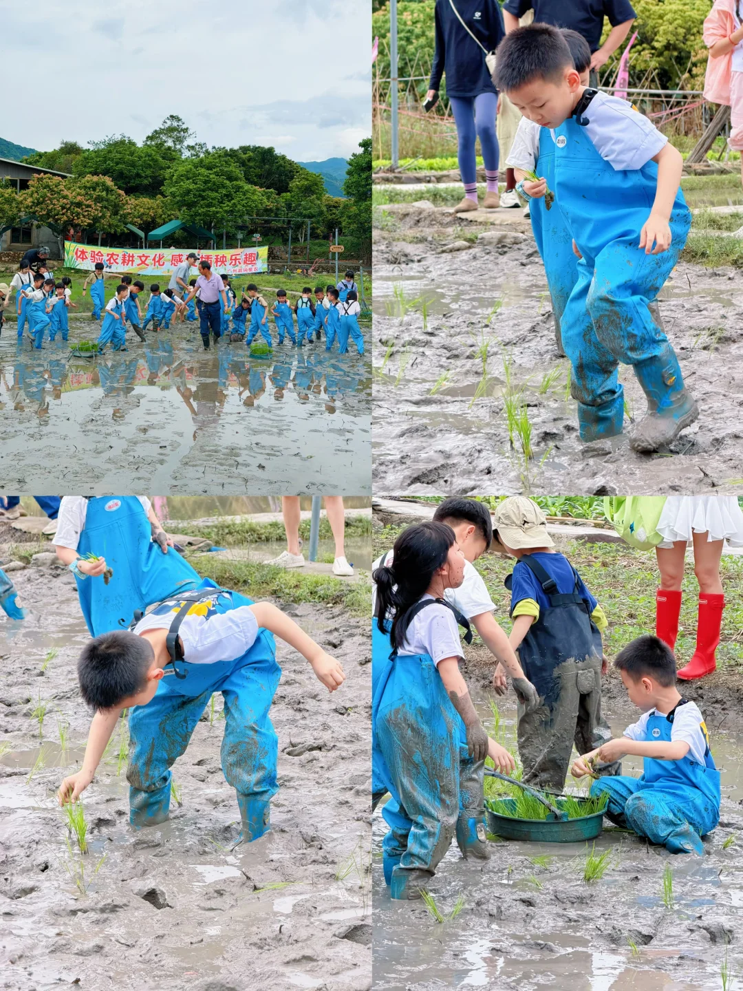 卷起裤腿踩进泥田,今年插秧的崽不再歪歪扭扭,比去年进步很大,老师还讲解了秧苗是怎么生长的,边玩边学超有意义!