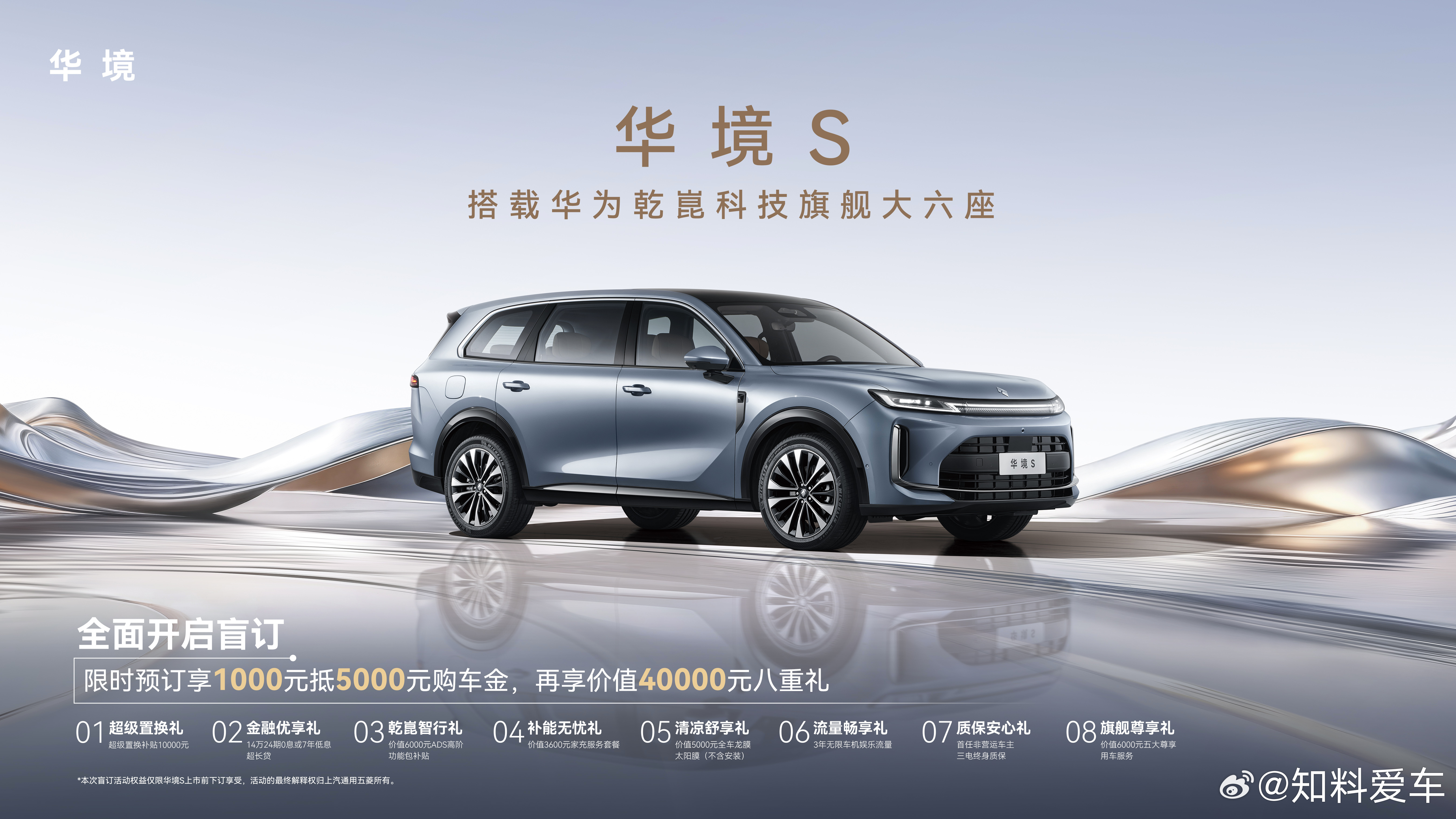 全系标配华为乾崑华境S携手全球顶级供应链首发亮相,正式开启预订限时下订享 1000 元抵 5000 元购车金再享价值40000元八重礼!华为乾崑大六座华境S开启预订华境S上市即支持城区领航辅助华境S全系标配华为乾崑 成都·成都科幻馆